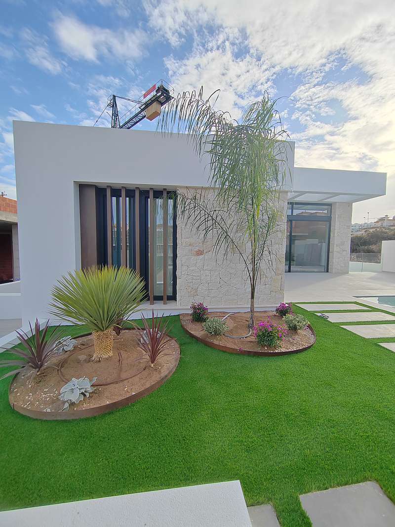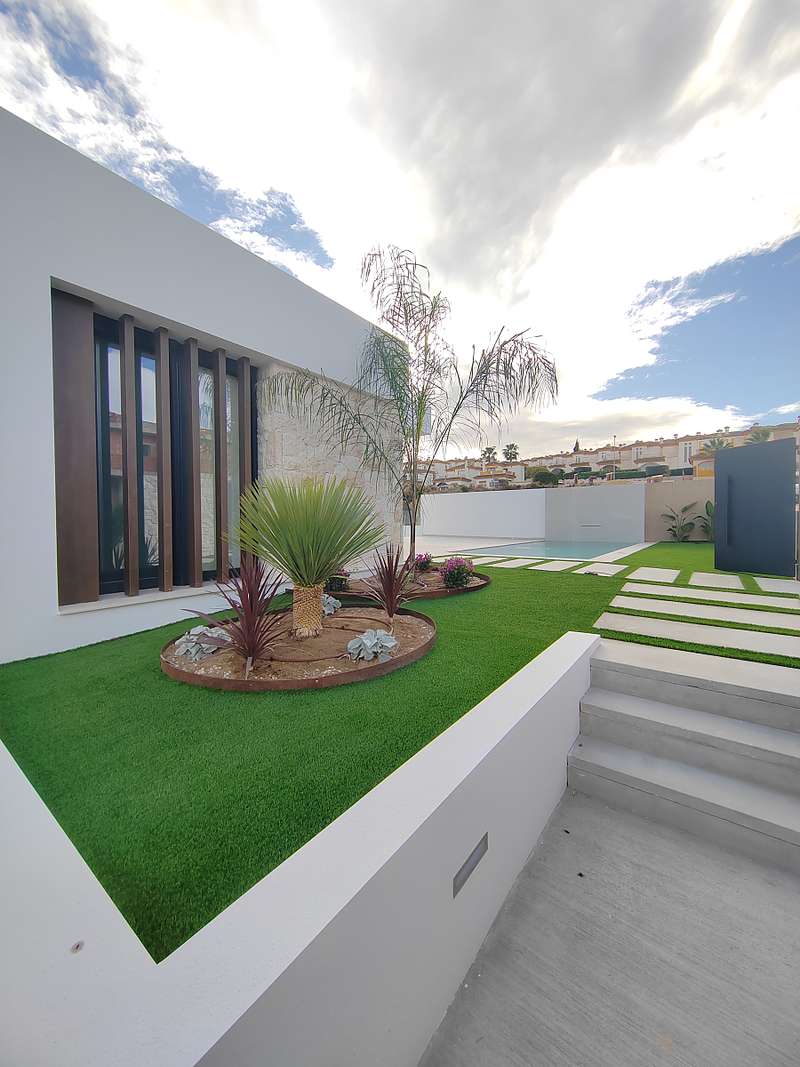 These luxury villas in Rojales offer a fantastic combination of modern style, privacy, and high-quality construction materials. Situated just 0.5 km away from the La Marquesa Golf course, they provide easy access to recreational activities. The villas are designed for residential living and boast 4 bedrooms, spacious interiors with 4m high ceilings on the ground floor, and glass fronts that offer stunning views.