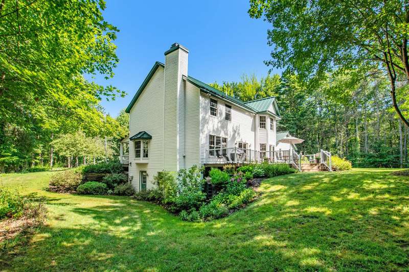 Impeccably maintained traditional home on 5 wooded acres just minutes from South Haven. A paved, hidden drive leads to this private haven with ample parking. Nearly 3,500 sqft of finished space offers 4 beds, 3 baths, hickory hardwood floors, and a cozy family room with wood-burning fireplace. The chef's kitchen features a granite island and Bosch, Electrolux, and Whirlpool appliances. Modern comforts include a 2019 Heil furnace, 2022 condenser, high-speed internet, and surround-sound basement. Enjoy the spacious porch, back deck w/ GreenShield warranty, durable metal roof, and extra-deep attached garage. Pride of ownership throughout this rare, serene retreat. Want more land? Separate parent listing for the house on 11+ and 22+ acres. 5 Acre split will require Township approval.