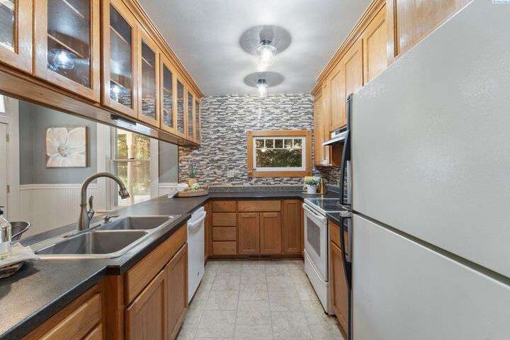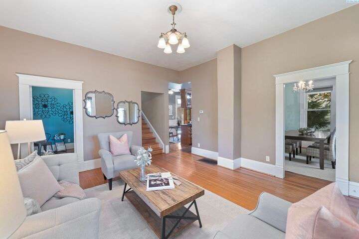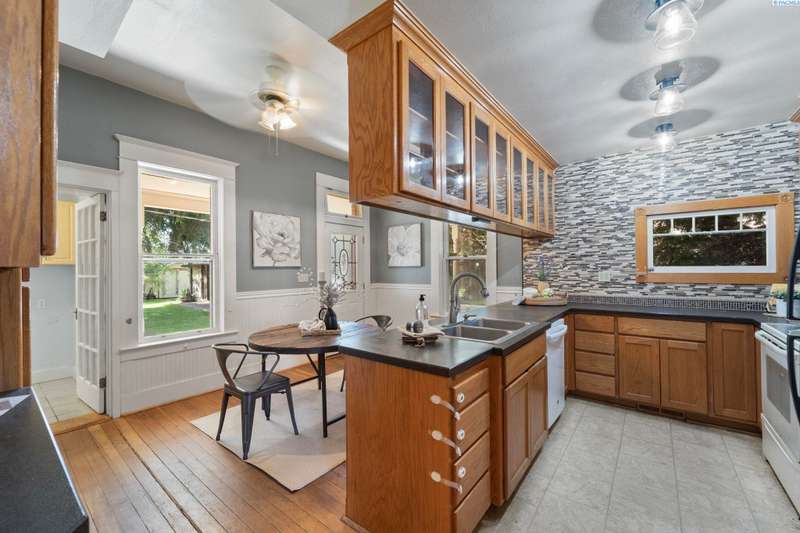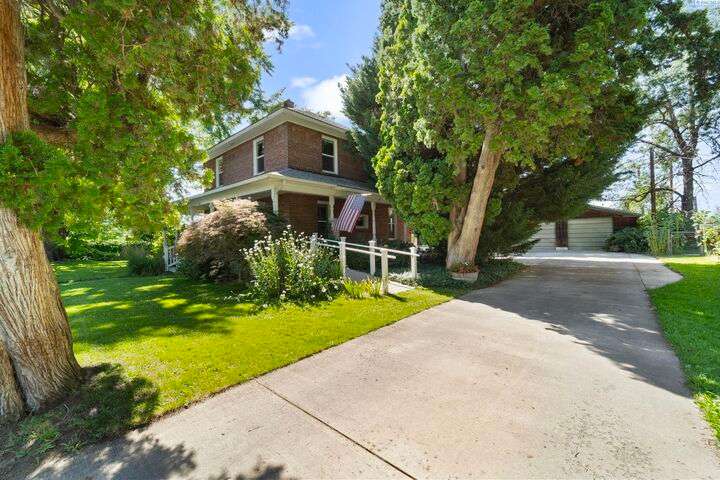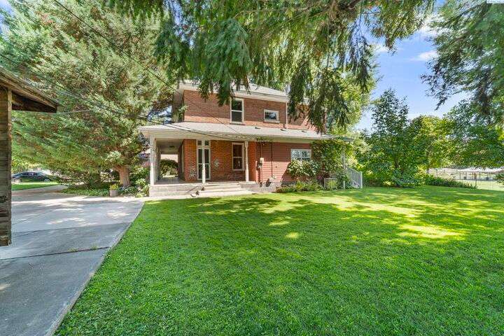 MLS# 286359 Step back in time with this stunning circa-1895 custom Craftsman in Prosser, WA, nestled on a lush 0.32-acre double lot with sweeping Yakima River views. Surrounded by mature Douglas Fir, Silver Maple, Elm, Magnolia, Cedar, and Arborvitae, this red brick home is a garden paradise with English Walnut, Almond, Peach, Thornless Blackberry, Table Grape, and Mulberry, all nourished by drip irrigation and Sunnyside Valley Irrigation. Inside, original wood floors, 3 large bedrooms, a main-level office, and vintage charm blend seamlessly with modern updates including a natural gas furnace, central HVAC, and updated electrical. Enjoy a wine cellar, oversized 2-car garage, RV/boat parking, and a classic wraparound porch—all in a home truly built like a fortress.