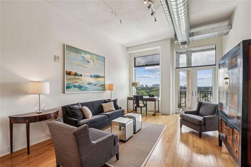 PRICE ADJUSTED! Top floor South-facing unit with a view of the city comes with 2 storage units and 3 parking spots!** The storage units are located adjacent to two of the assigned parking spaces. A third parking space is located on the ground level just off the lobby. This rare 10th-floor unit, which has never been lived in or rented, has hardwood floors, high ceilings, and a large balcony with skyline views of Buckhead and the city. In this floor plan, the kitchen with a brand new Bosch dishwasher and a separate large pantry, opens to the living and dining areas. All appliances, including the refrigerator, oven, cooktop, vent hood, washer, and dryer, remain. The bedroom has new carpet, and the bathroom has double vanities, a garden soaking tub, and a separate shower. The guest powder room can be closed off from the primary bath. The View at Chastain offers amenities such as a 24-hour concierge, a gated parking garage for safety, a grand lobby with a community room featuring media and catering areas, a fully equipped fitness center, a sauna, a pool, and a grilling area. Guest parking is located along the north side of the building. This building is FHA-approved, and investors are welcome. The View at Chastain is just steps away from restaurants, bars, and shops, and has Chastain Park just around the corner. See this stunning unit today!**Parking spaces are #43G, off the main lobby and #52 and #65 on level P1. Storage units #106A and #106D are also located on level P1. As these parking spaces and storage units are considered limited common areas/elements, once the Buyer owns property, the Buyer may sell one or more parking spaces or storage units to other unit owners.
