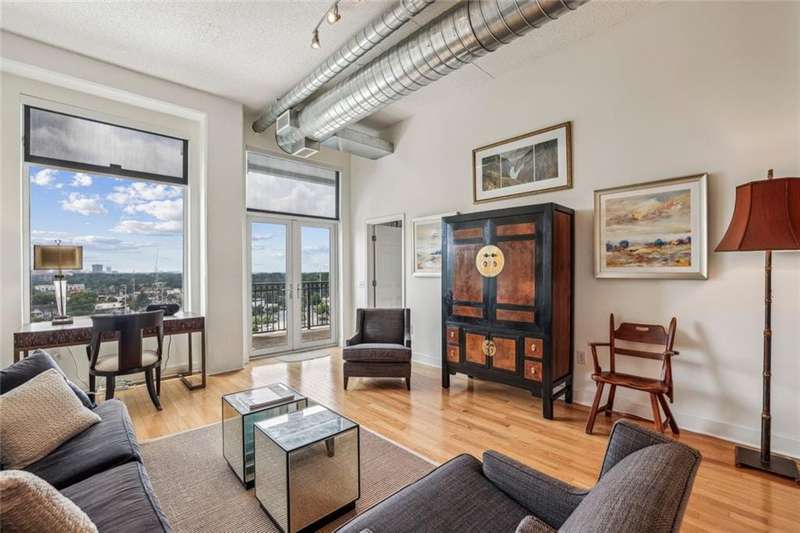 Top floor South facing unit with view of the city conveys with 2 storage units and 3 parking spots!** The storage units are located adjacent to two of the assigned parking spaces. A third parking space is located on the ground level just off the lobby. This rare 10th floor unit, which has never been lived in or rented, has hardwood floors, high ceilings and a large balcony with skyline views of Buckhead and the city. In this floor plan, the kitchen with a brand new Bosch dishwasher and separate large pantry, opens to the living and dining areas. All appliances including refrigerator, oven, cooktop vent hood and washer and dryer remain. The bedroom has new carpet and bathroom has double vanities, garden soaking tub and separate shower. The guest powder room can be closed off from the primary bath. The View at Chastain has amenities including: 24-hour concierge and gated parking garage for safely, grand lobby and community room with media and catering area, fully equipped fitness center, sauna, pool and grilling area. Guest parking is located along the north side of the building. This building is FHA approved and investors are welcomed. The View at Chastain is just steps away from restaurants, bars and shops and has Chastain Park just around the corner. See this stunning unit today!**Parking spaces are #43G, off the main lobby and #52 and #65 on level P1. Storage units are #106A and #106D also located on level P1. As these parking spaces and storage units are considered limited common areas/elements, once Buyer owns property, Buyer may sell one or more parking spaces or storage units to other unit owners.