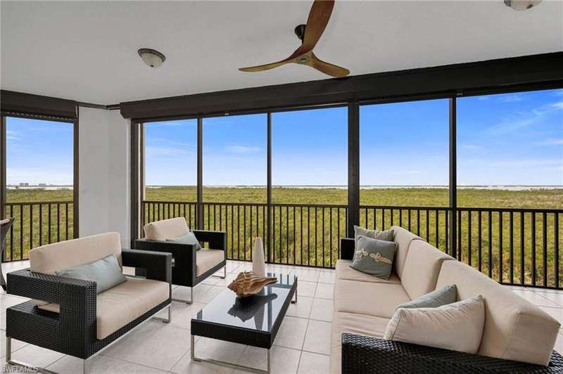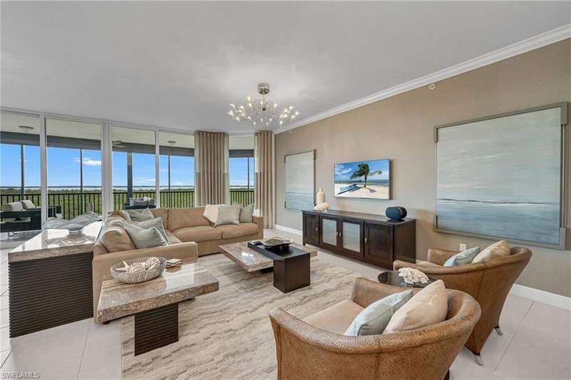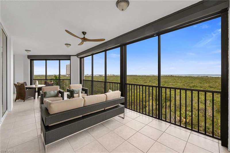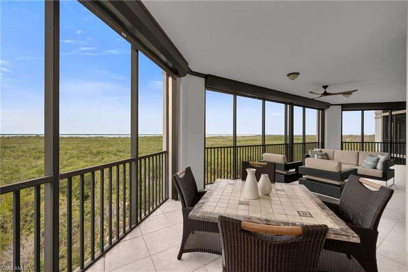 Enjoy the sunset views of a high-rise with the quiet privacy and convenience of a mid-rise. Offered furnished, this exquisite upper floor residence boasts panoramic views of lush nature preserves, sparkling Estero Bay waters, and the barrier island known as Lover's Key. The building's open-air atrium entry provides a warm and welcoming touch, blending indoor sophistication with the serenity of lush greenery, soft natural light, and the gentle breeze wafting in from outside.Meticulously updated with designer lighting, fans, elegant window treatments and modern furnishings, this serene property offers an elegant yet relaxed atmosphere. The chef's kitchen features luxurious wood cabinets, stylish backsplash, breakfast bar, center island, and premium appliances such as a Sub-Zero wine cooler. Ideal for entertaining or just relaxing with family, the inviting living and dining areas open to the spacious wrap around lanai with floor to ceiling glass doors and electric hurricane shutters. A restful primary suite offers a spa-like bath, an enormous custom closet, and direct access to outdoor living. Enjoy unparalleled community amenities including a private beach pavilion, bocce, private restaurant, tennis, fitness center, and a tropical resort-style pool and spa. Castella offers a quiet tropical setting on 11 acres with resort level amenities including exclusive access to The Bay Club offering unparalleled luxury while dining and enjoying the beaurtiy of Estero Bay and beyond. The Colony at Pelican Landing is just moments away from Bonita Beach, Coconut Point Mall, and SWFL International Airport.