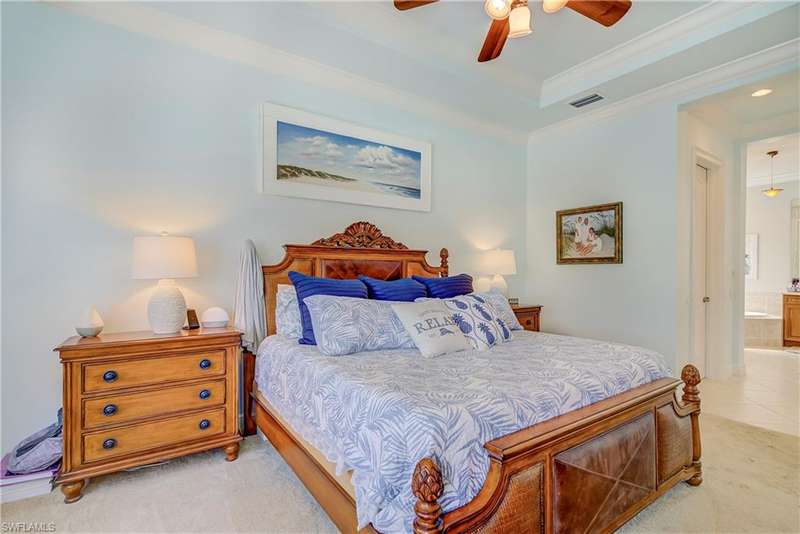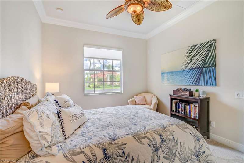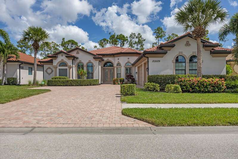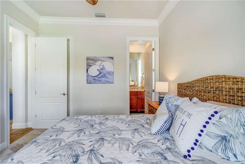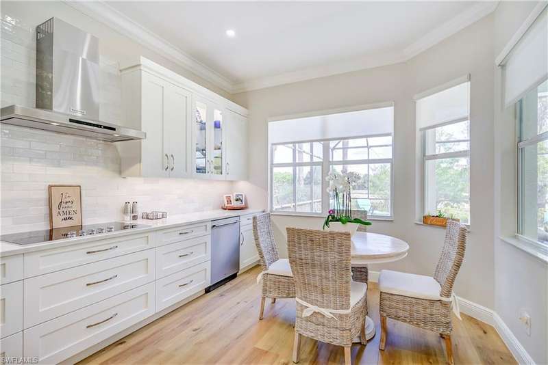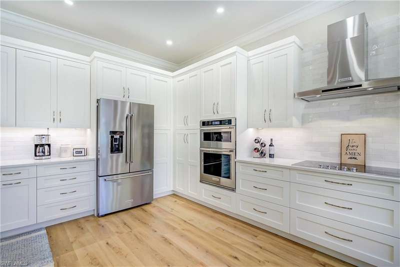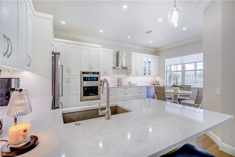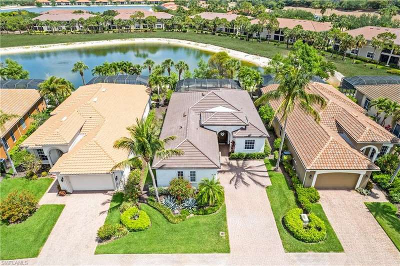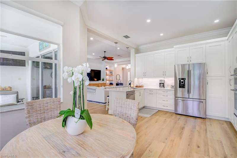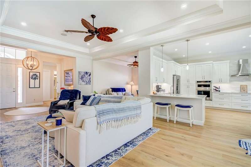 Beautifully renovated and ideally located just steps from the clubhouse and resort amenities, this 3-bedroom, 3-bath pool home in Vasari Country Club offers luxury living with quality craftsmanship, stylish finishes, and a new roof among its many thoughtful updates. The dream kitchen is designed for both beauty and functionality, featuring custom cabinetry, elegant hardware and faucet, and a full suite of 2022 KitchenAid appliances including a refrigerator, dishwasher, convection wall oven/microwave, and cooktop along with a Whirlpool beverage fridge. Wide-plank luxury vinyl flooring flows throughout the main living areas, creating a modern and cohesive space. The open great room is an entertainer s dream, with a custom shiplap-paneled entertainment wall, built-in shelving, and a mounted television. A wall of three-panel glass sliders opens to your private lanai, where you'll enjoy beautiful views of the pool, tranquil lake, and Vasari s 18th hole. The spacious owner s suite has direct