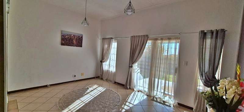 This beautiful simplex is ready for you to move into immediately. Available once approved, this delightful home features two bedrooms and two bathrooms (with the main full bathroom en-suite). It includes a spacious living and dining area that flows out to a cozy fireplace and an open-plan kitchen with plenty of cupboard and appliance space, as well as the convenience of a gas stove. There is a fair-sized garden, double automated garages, and one reserved visitor parking space. The estate offers 24-hour security with patrols, beautiful walkways, recreational facilities such as a swimming pool, clubhouse, tennis and squash courts, and a play area for kids. Call now to make a viewing appointment.