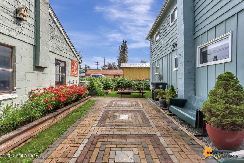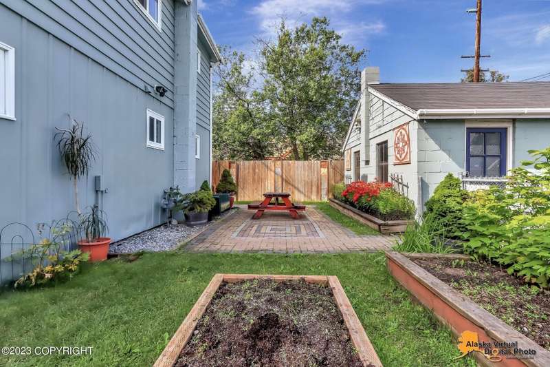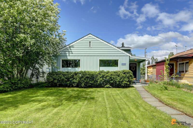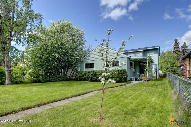 Distinct & spacious home near park strip, schools, bike trails & museum. Located in the historic neighborhood of Downtown's 'Pilot Row' w/tree-lined streets, sidewalks & alleys this big beautiful home boasts gorgeous HW floors, large bedrooms, private outdoor patio, garage off paved alley. Friendly neighborhood community w/routine social gatherings..all the perks of an urban lifestyle. See 'More' Here are a few points about this exceptional home. -Great curb appeal -Beautiful front privacy hedge and lush front lawn -front stoop and fenced front and back yards -Grounds are nicely landscaped with ample garden beds, berry bushes, and fruit trees including cherry and apple -Arctic entry with coat closet -Gorgeous Hardwood floors & cool original details throughout -Large main living area -A welcoming kitchen -3 big bedrooms -the 2 secondary bedrooms are connected by a jack & jill bath -The primary bedroom suite (with jacuzzi bath) is conveniently/privately located on the main level away from the other bedrooms. -PLUS an office/nursery -PLUS a music room or den with connecting bath -PLUS a lower level family room, studio, yoga studio with bath -So much space and plenty of room for everyone to spread out and do their own thing -Very nice private patio area with hook-up for a hot tub -detached garage, paved alley, parking space for the camper Active, family-oriented neighborhood community with social gatherings. Close proximity to Denali and Central, playgrounds, the museum, the park strip, tennis courts, the bike trail system, shops...all the perks of an urban lifestyle.
