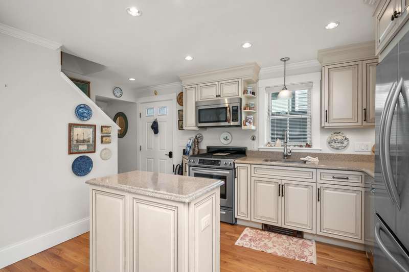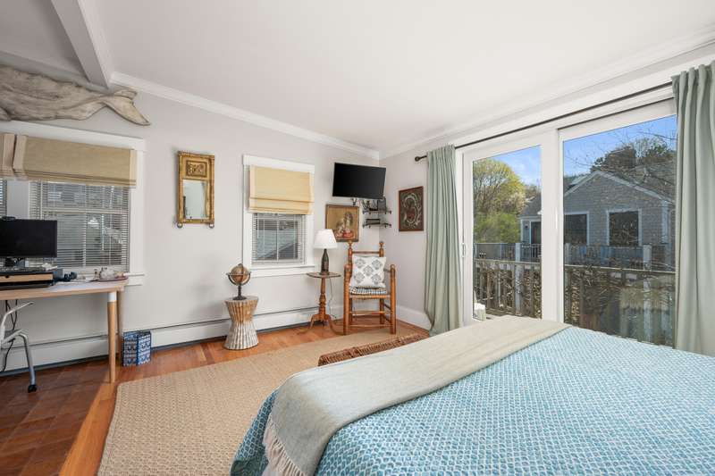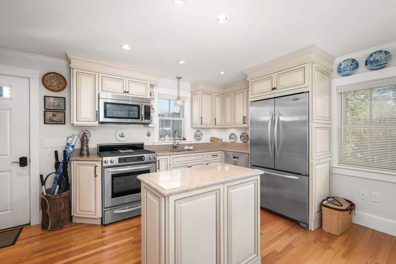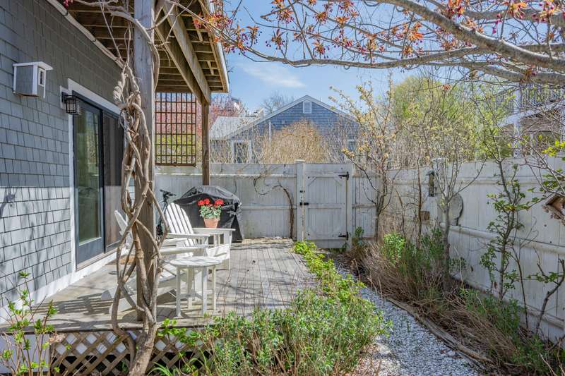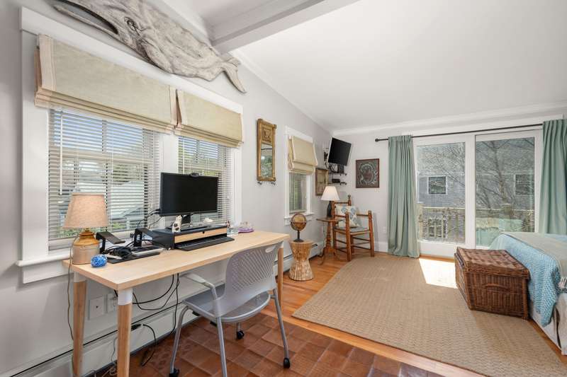 Nestled in Provincetown's West End, this nicely appointed two-bedroom, two-bath freestanding cottage blends Cape Cod charm with thoughtful modern updates. Completely rebuilt in 2013 and enjoyed by a single owner, the home showcases quality craftsmanship with features like hardwood floors throughout, crown molding, and charming 5-panel cottage-style interior doors. The well-designed kitchen features quartz countertops, stainless steel appliances, custom lightly stained cabinetry, and a serving island with dining space--perfect for entertaining or enjoying a cozy evening at home. Just a few steps down, the living area is anchored by a gas fireplace and opens to the outside through sliders to a spacious deck and beautifully landscaped, fenced-in yard. A cozy guest bedroom with garden views and a full bath with stacked washer/dryer complete the main floor. Upstairs, the primary suite spans the entire 2nd level and offers a serene retreat with a flexible work/dressing area, walk-in closet,