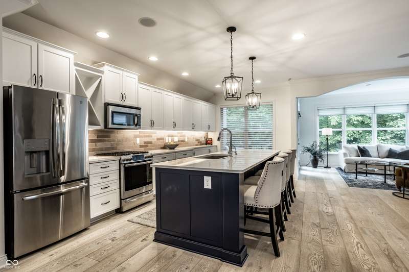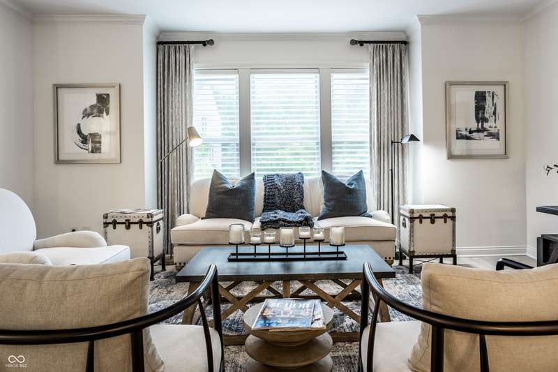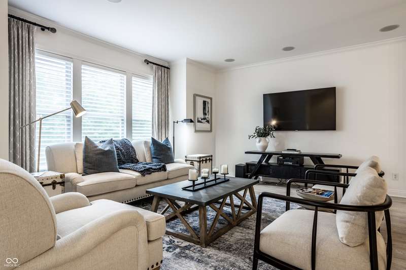 Tucked along the Monon Trail in the heart of Carmel, just around the corner from the Carmel Arts & Design District, shops, and eateries, every day feels like a weekend getaway. Inside, the light-filled, open-concept main level is perfect for hosting - from morning coffee to dinner parties - with a sleek kitchen flowing seamlessly into generous living and dining areas. Upstairs, the expansive primary suite offers a peaceful retreat with a cozy sitting room - ideal for a home office, workout area, or reading corner - and a stylishly renovated en-suite. The lower level invites you to unwind or entertain with a full bath, wet bar, and walkout access to your private patio overlooking the trail. Updated and thoughtfully designed, this home blends modern comfort with unmatched convenience. Opportunities to be on the Monon Trail are rare, come experience trailfront living in Carmel!