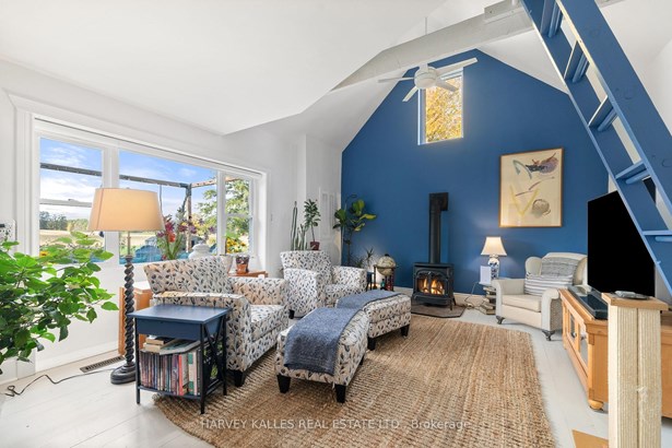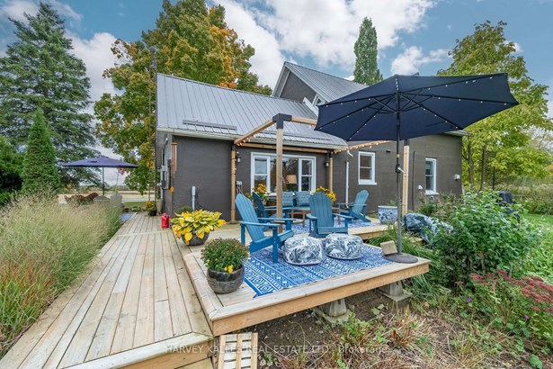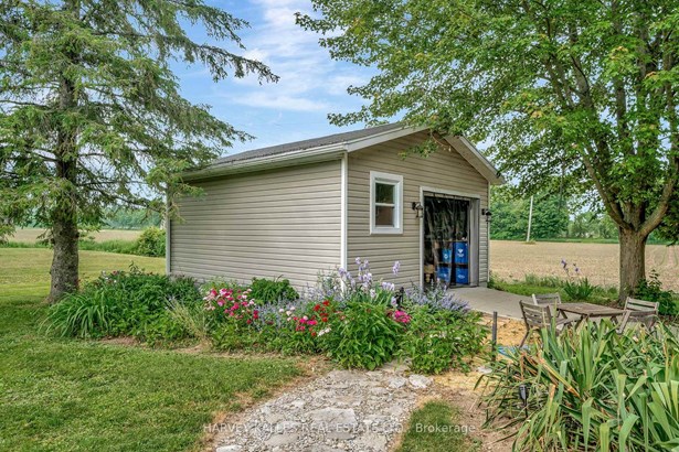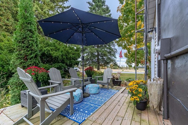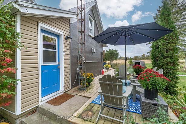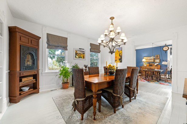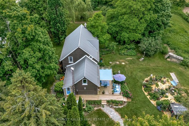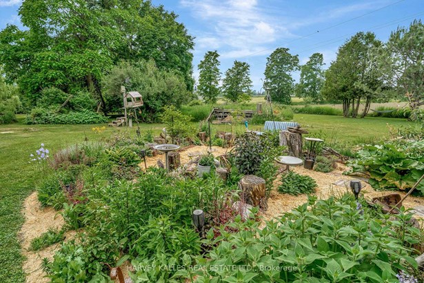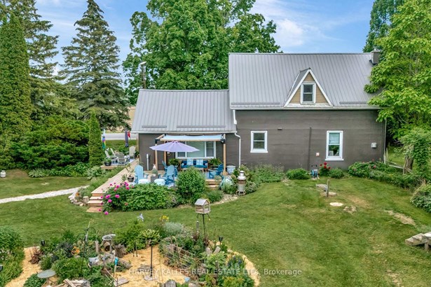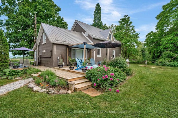 With a backdrop of Beaver Meadow and facing East Lake, this property is ensconced in nature! A warmest welcome to the Block House, a Quebec-style century farmhouse with tasteful modern flair. Circa 1892, this home and property reveals its beauty at every turn! The main floor is bathed in natural light, large spaces, and a cozy atmosphere enhanced by original wood flooring, intricate mouldings and trim work, 9 foot ceilings and three beautiful gas fireplaces! The great room, a sanctuary of light and tranquility, overlooks the back deck and westerly gardens; a delightful room sure to be the heart of the home (and a bonus: a finished loft space!). The dining room and kitchen are central, providing ample room for guests, friends, and family to gather and enjoy; these rooms have hosted many dinner parties! A parlour provides an exceptional living room or office space, offering versatility to suit your lifestyle. Upstairs (a tall half-storey also with 9 foot ceilings!), 3 bedrooms and a full bath complete the home. The grounds and gardens are enchanting; a rich tapestry of native trees and flora dot the property: heritage maple, Scotch pine, hickory, catalpa, pin oak & columnar oak, willow, and cedar. There are re-naturalized gardens as well as a small personal orchard with bush cherries, high bush blueberries, rhubarb, apricot, apple, and pear trees. A thriving stumpery with perennial plantings, vegetables and herbs is a beautiful backyard focal point to enjoy from the back deck, either under the canopy or the open sky! With a side deck surrounded by gardens and offering seasonal views of the lake, a bbq pit, a spacious side and back yard, there is so much opportunity to enjoy the beauty of this property. Experience the enchanting allure of The Block House.