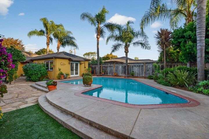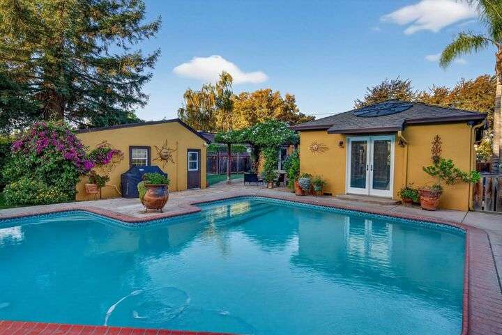 Welcome to 2129 Bello Ave, nestled on a quiet, tree lined street in one of the most desirable pockets of Willow Glen. This beautifully remodeled single story sanctuary features 3 bedrooms, 2 bathrooms, and 1,662 square feet of living space, situated on a large, approximately 8,192 square foot lot. Enjoy the light and bright, open floor plan with an expansive living room that flows seamlessly into the designer gourmet chefs kitchen and inviting dining room. Retreat to the spacious bedrooms, offering both comfort and privacy. Step outside to a resort style backyard with a charming wooden pergola wrapped in vibrant green vines that weave effortlessly overhead, sparkling swimming pool surrounded by picturesque flagstone, and lush turf, all perfect for entertaining and relaxation.Additional highlights include refinished hardwood floors, fresh paint, new baseboards, updated bathrooms, and gorgeous mature landscaping. Conveniently located within walking distance to award winning schools including Booksin Elementary, St. Christopher, Presentation, and WG High. Just a short drive to vibrant Downtown Willow Glen, known for its boutique shops, restaurants, and family-friendly atmosphere. This stunning home perfectly blends comfort and convenience. Do not miss your chance to make it yours!