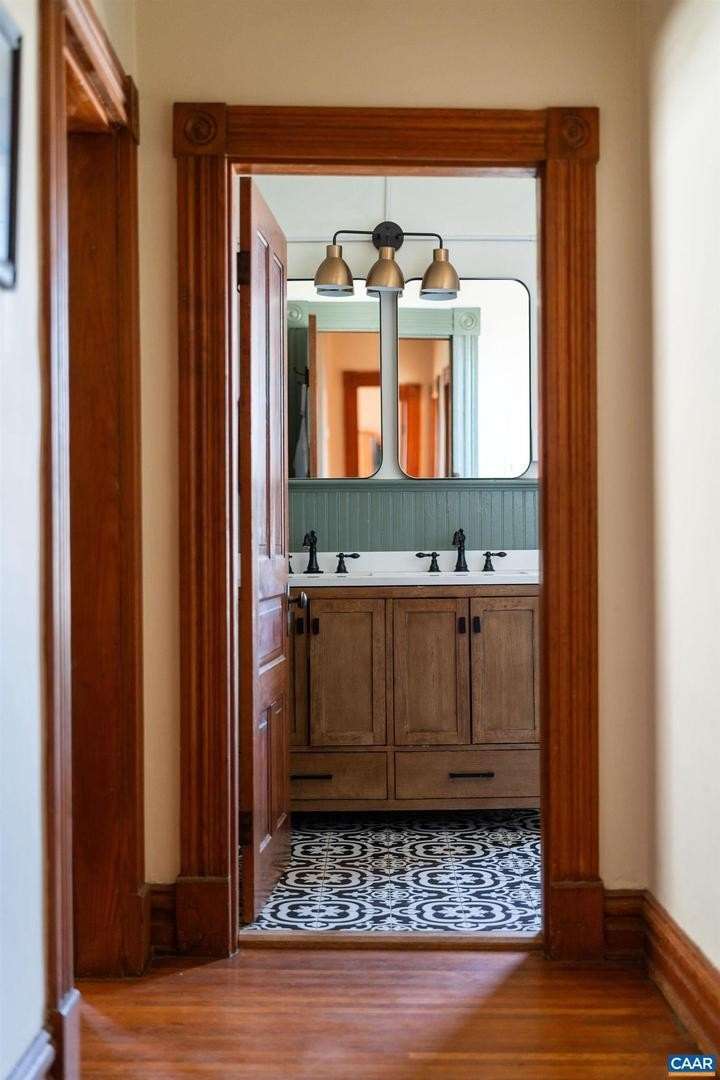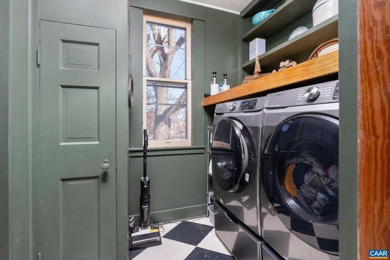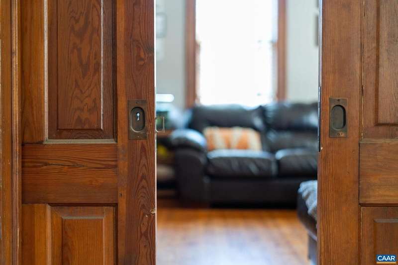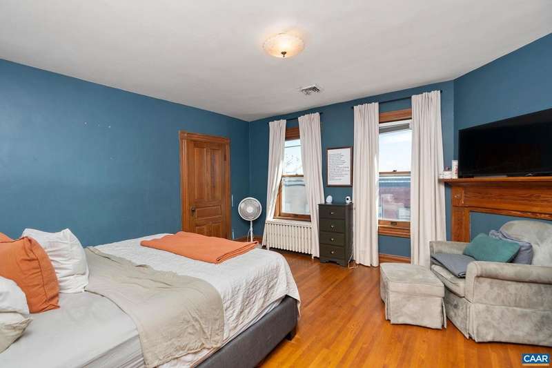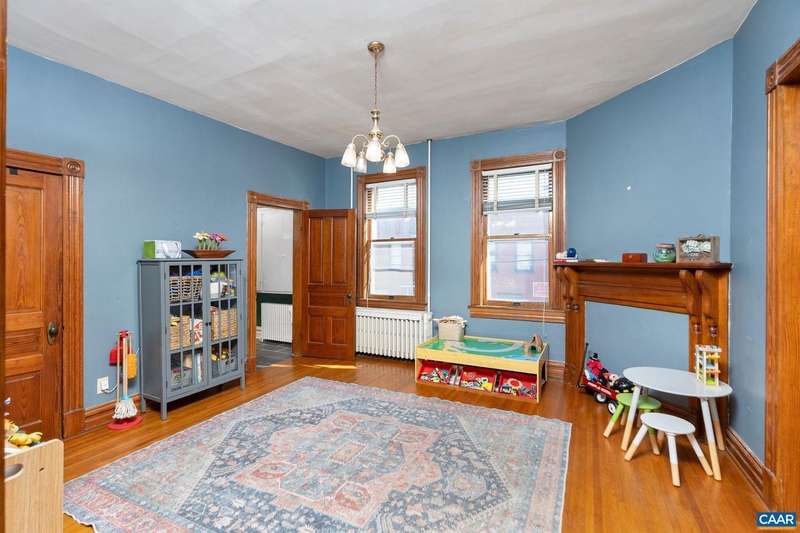 Turn-of-the-Century Beauty Located in Newtown! Step into timeless character with this historic American Foursquare, perfectly situated atop the heart of Downtown. Spectacular morning sunshine & beautiful city views peek through from nearly every room including 7 church steeple chase views. The grand foyer welcomes you with soaring 10? ceilings, original woodwork, exposed brick, solid 1-inch oak hardwood floors that continue thu-out. Colonial revival architectural details abound?oversized trim, bullnose corners & authentic wood-tracked pocket doors. 6 original mantels & 2 Franklin fireplaces stand as centerpieces of craftsmanship from a bygone era. The main level features spacious rooms with large windows, a beautifully renovated 1/2 bath & a thoughtfully updated laundry room/eat-in kitchen. Upstairs offers 4 generous bedrooms & a fully remodeled full bath. Plus a walk-up attic ideal for storage or creative use. Modern comforts include radiant heat, new upstairs HVAC system & updated electric panel. Large basement perfect for storage. Peaceful city retreat with a shaded backyard, mature treescape and privacy fencing. With close proximity to Gypsy Hill Park & Montgomery Hall Park. A rare gem blending historic charm & modern comfort.,Painted Cabinets