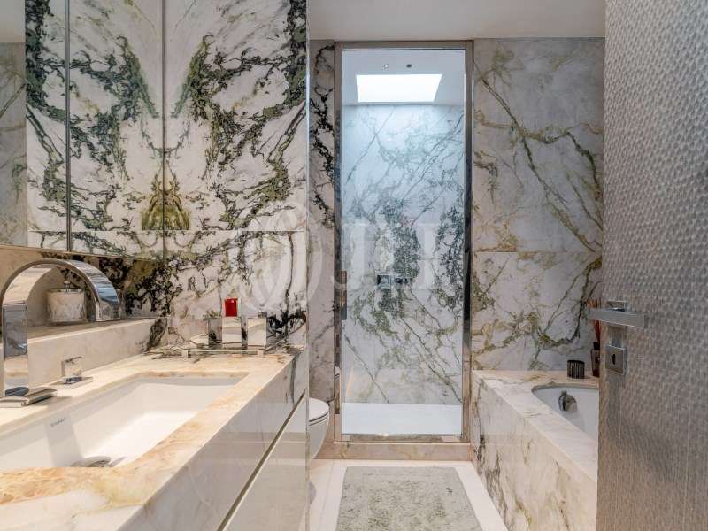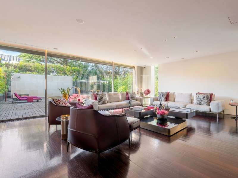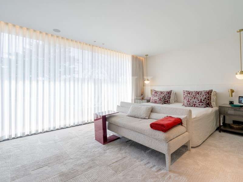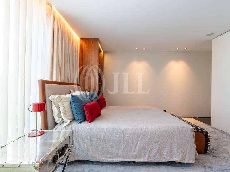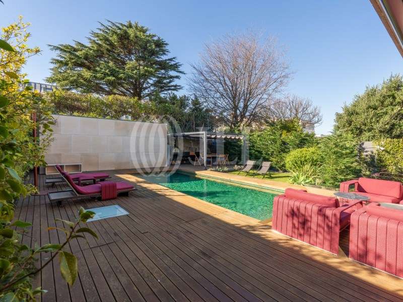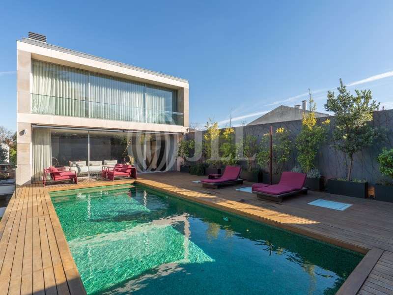 Moradia T4+1 com 468 m² de área bruta de construção, piscina aquecida, garagem e estacionamento exterior, em lote de terreno de 487 m², na Foz do Douro, Porto. A moradia contemporânea, da autoria do arquitecto José Carlos Cruz, distribui-se por três pisos, onde se destacam materiais como mármores Moleanos, Port Laurent, Rosso Lepanto, Lilac, Sivec e Branco Madeira, combinados com madeira de nogueira americana e acabamentos laqueados. Integra sistemas de automação Crestron para controlo de iluminação, climatização e cortinas, aquecimento radiante no piso térreo e, no 1º piso, radiadores e ar condicionado em toda a casa, um elevador para os 3 pisos e um pequeno monta-cargas da garagem diretamente à cozinha. No piso inferior encontram-se uma sala multimédia, ginásio, lavandaria e duas suítes, uma das quais actualmente funciona como escritório. O piso principal concentra as áreas sociais com sala de estar que inclui lareira a bioetanol e acesso ao jardim, cozinha revestida em quartzo Taj Mahal totalmente equipada, sala de jantar e lavabo social. O piso superior destina-se à zona privada com três suítes, cada uma com closet e casa de banho revestida em mármore. A biblioteca apresenta papel de parede artístico 'Le Couple' de Louise Bourgeois. Os espaços exteriores incluem piscina aquecida com revestimento em mosaico verde-esmeralda, sauna, cozinha exterior equipada com churrasqueiras a carvão e gás e forno de pizza. O jardim tem vegetação madura e sistema de iluminação integrada, com áreas cobertas revestidas em madeira natural e mármore travertino. A moradia localiza-se numa das zonas mais procuradas do Porto, próxima do mar e com acesso facilitado ao centro da cidade e às principais vias de comunicação da região. Categoria Energética: A #ref:94586