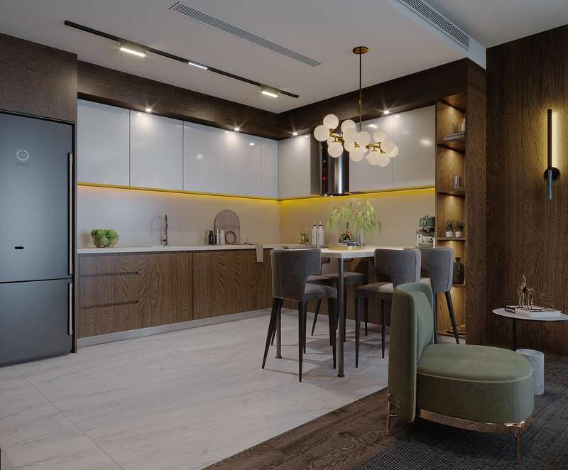 The apartments consist of bedrooms, living room, open kitchen, entrance hall, separate bathroom and dressing room in the bedrooms, laundry room and common bathroom areas. The apartments are equipped with quality kitchen cabinets, garderobe, quality bathroom and kitchen fixtures, laminate and ceramic floor coverings, steel door, aluminum heat glazed window systems, shower cabin.