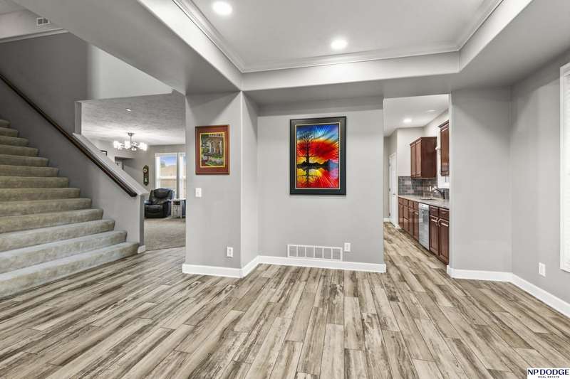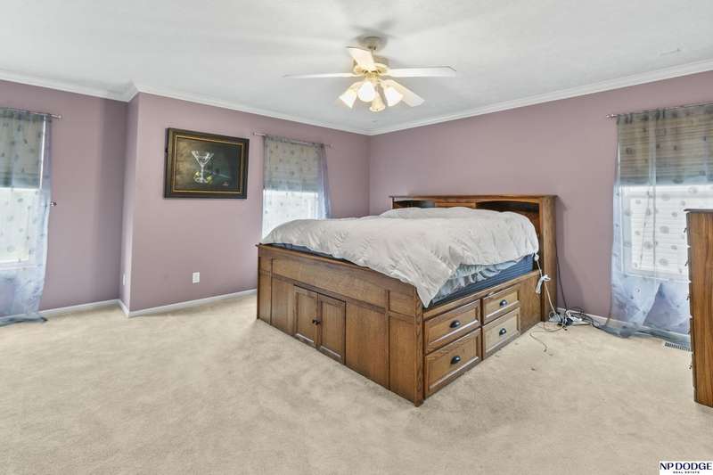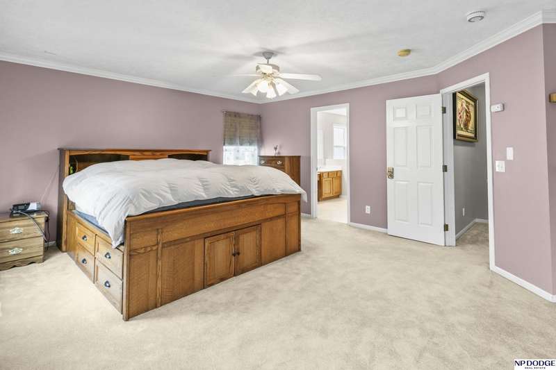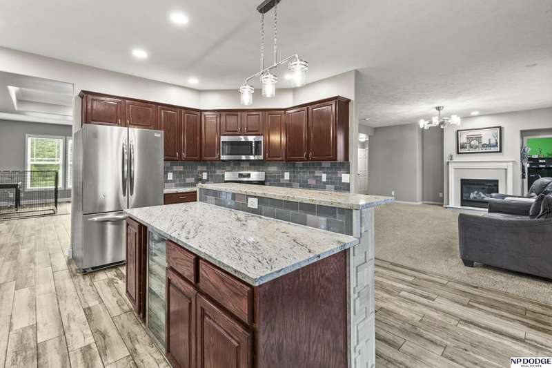 PRE-INSPECTTED in the heart of Autumn Grove! This 2-story home sits on a corner lot and features 5 large bedrooms, 4 bathrooms, a finished basement AND a bonus room / office. Spacious dining and living area with gas fireplace, kitchen with stone accents and main floor laundry. The luxurious primary suite features a second gas fireplace, soaker tub, walk-in closet, and convenient dual sinks. Enjoy worry-free living with two NEW furnaces with built in humidifiers (2019), two NEW A/C units (2019), insulated garage doors (2019), NEW garage door openers, NEW windows (2019 / 2020) with a transferable warranty, a NEW roof with Malarkey class 4 shingles (2018) and a NEW deck in 2024. Great location close to Millard Schools, Shops, Dining & Lake Zorinsky. AMA