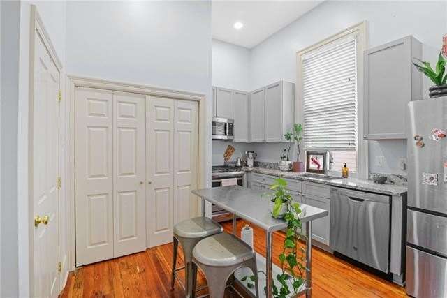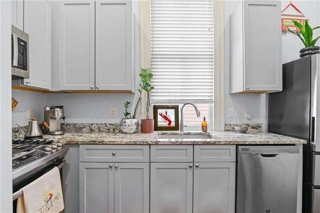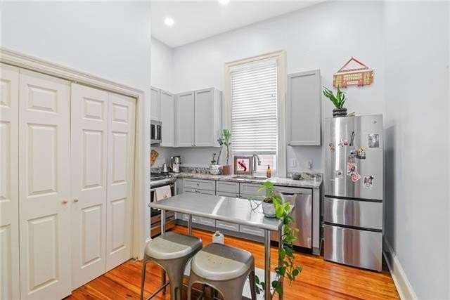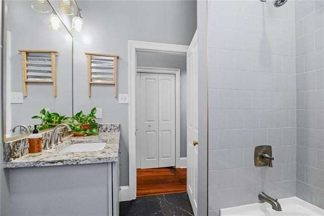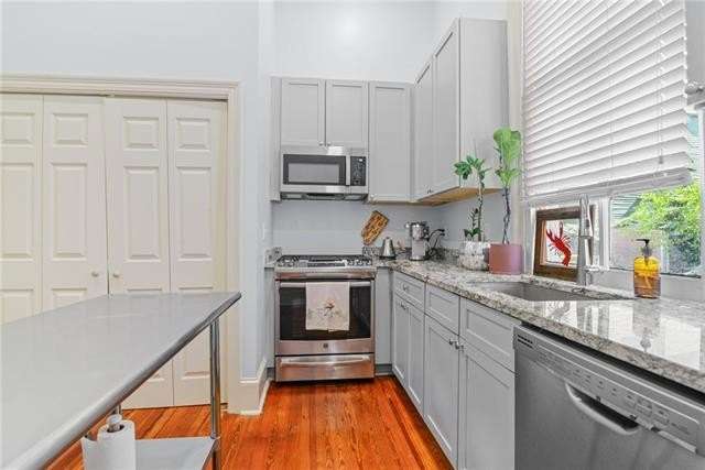 Lower Garden District gem: lower rear condo with two spacious primary suites, each with ensuite bath and multiple closets. Hardwood floors, great natural light, and an easy, open flow. Blocks from Coliseum Square park, restaurants, bars, shopping, and the St. Charles streetcar. Gated off-street parking (1 car), low condo dues and in-unit laundry complete the package.