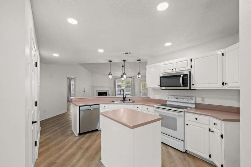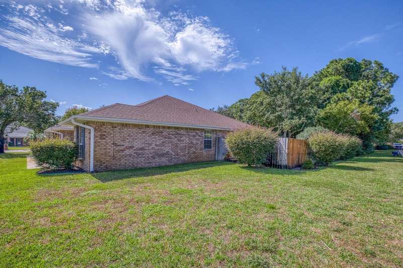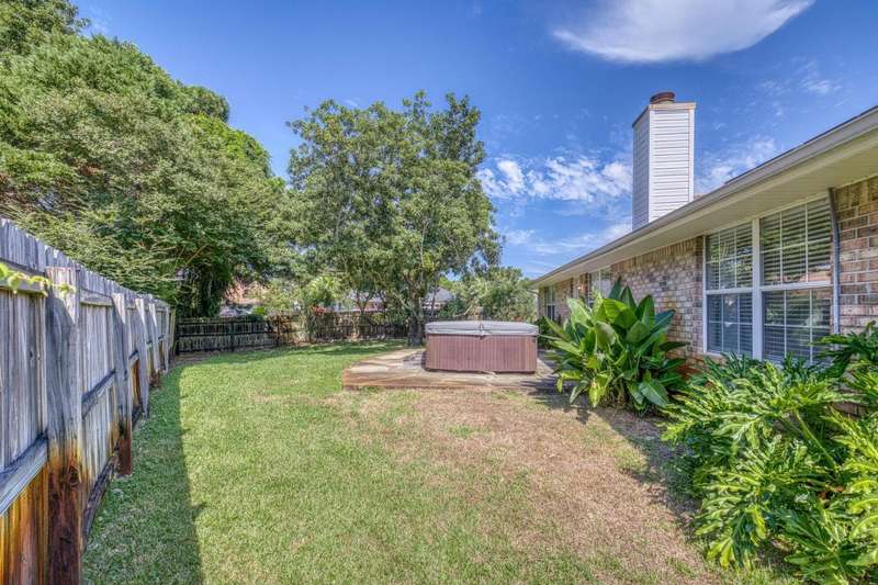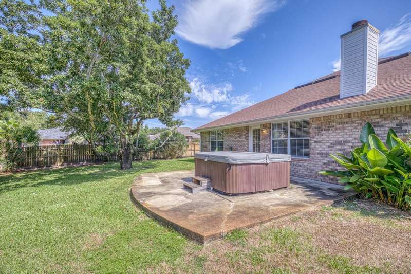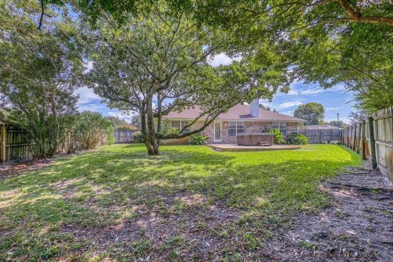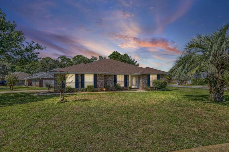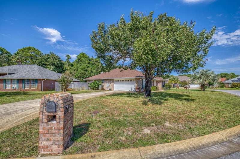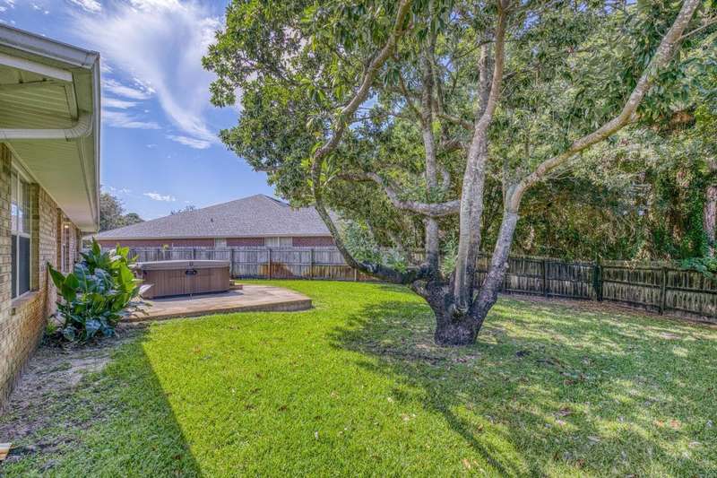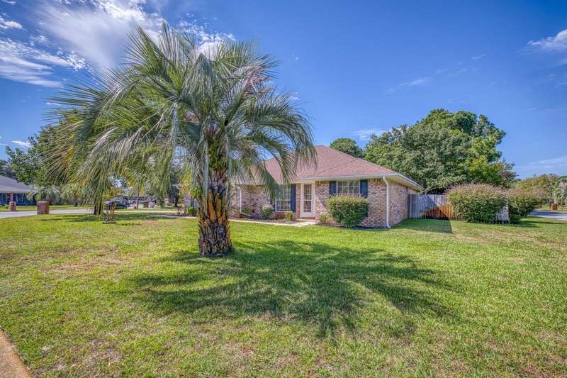 LOCATION, LOCATION, LOCATION!! Welcome to this all-brick - MOVE-IN READY home nestled in the highly desirable Midway area of Gulf Breeze. This 4-bedroom 2-bath residence is ready for you to call HOME. When you walk in, notice the high ceilings, new plank - wood - look flooring and natural light. The split bedroom floorplan offers the kitchen in the heart of the home, dining in the front and living room with fireplace in the back. The main suite is situated opposite of the 3 other bedrooms and that main bath - with 2 closets, double vanity, gardentub/shower combo and vinyl flooring is super clean. The other 3 bedrooms and hall bath are all ample size. The corner lot with fenced backyard and side-entry garage is situated facing east with the backyard shaded by mature trees. Oh - and there i is a Hot Tub on the back patio so those trees also add privacy - yet you can still see the stars - jussayin'. Enjoy the best of the Gulf Coast with easy access to Gulf Breeze's top-rated schools, Pensacola State College South Campus, beautiful emerald water & white beaches either on Navarre or Pensacola Beach, and local shopping and dining. Don't miss the opportunity to add your own personal touches and make this Gulf Breeze gem your new home. Make your appointment today!