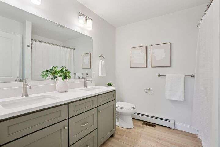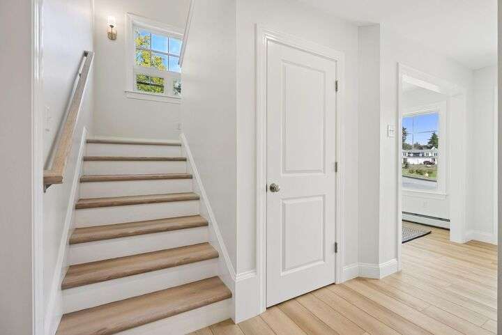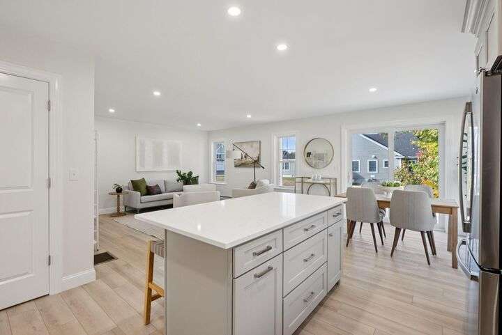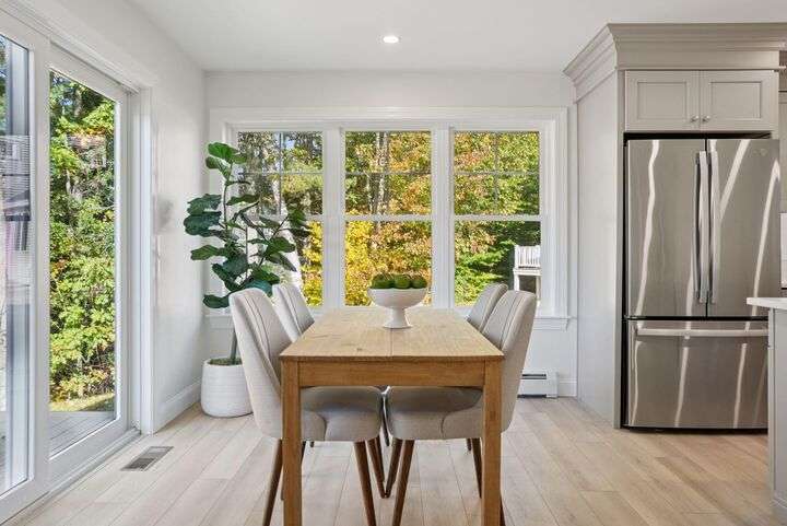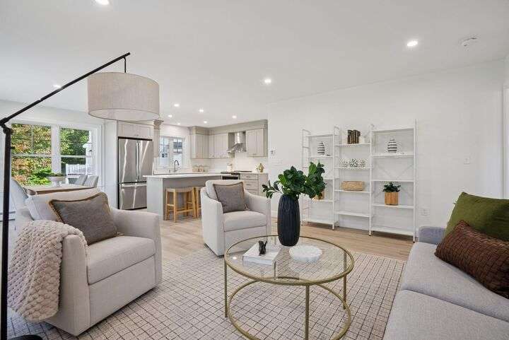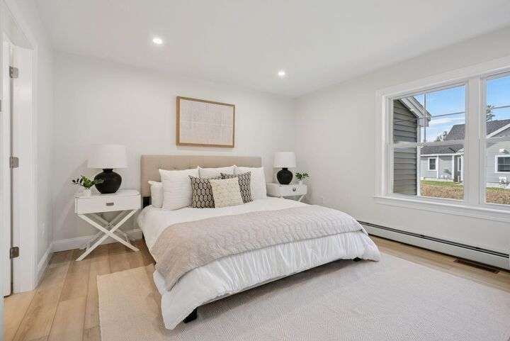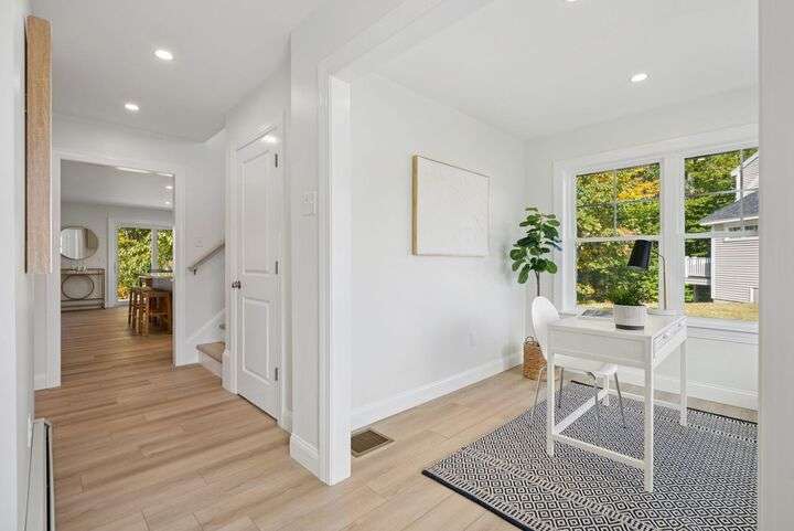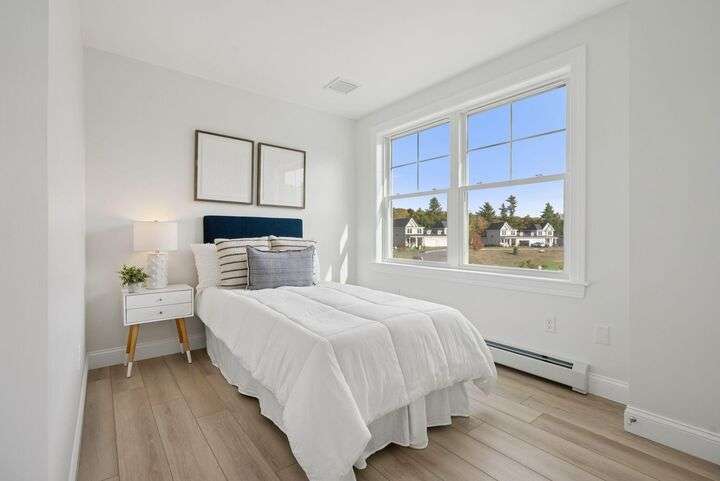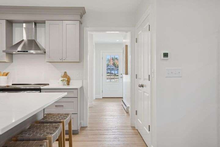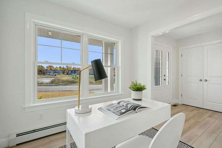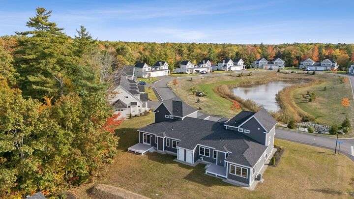 This newly built condo is ideally positioned on a unique private corner lot with wooded views and a beautiful serene view of the community's landscaped pond. Spacious and beautifully appointed with three bedrooms and 2.5-baths, you will find a thoughtful design boasting elevated finishes and a functional easy living layout. As you enter, there is an office/den with 2 walls of windows facing the private woods as well as the community pond, making this an ideal place to work, read or just relax. At the heart of the home, the large kitchen with an extra large island, presents ceiling-height cabinetry, quartz countertops, an induction range with vented hood, and a generously sized convenient food pantry. It opens to the dining area with a unique wall of large windows facing the woods allowing for expansive private wooded views as well as direct access to the rear deck—and continues into the living room, composed for gracious everyday life and entertaining. Designed for single-level living, the first-floor primary suite includes a generous walk-in closet and a well-appointed bath with double quartz vanity. A half bathroom and laundry room complete this level. Upstairs there are two light-filled pond-view bedrooms, a spacious full bath, and a large storage hall closet. Quality wide-plank maintenance-free flooring unifies the principal rooms and bedrooms, and continues all throughout the condo, for a crisp, timeless finish. Comfort and efficiency are ensured by a Viessmann high-efficiency boiler, 3 zone hot water heat, 3 zone central air conditioning, and an air exchanger. An attached two-car garage and full, unfinished basement provide excellent storage and future flexibility. Brand-new and never occupied, this Cascade Falls sanctuary pairs elegant turn-key living with convenience - within minutes to some of Maine's most beautiful beaches, restaurants, trails, and golf, with swift access to Route 1, I-95/I-295, and only 20 minutes to downtown Portland.