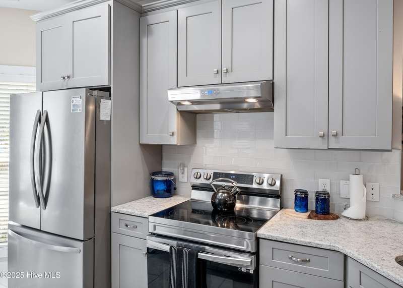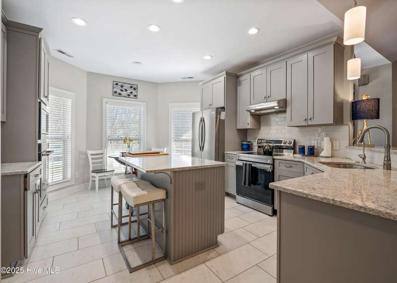 Step inside this inviting 3-bedroom, 2-bath home featuring a light, open floor plan and gorgeous updates throughout. The great room impresses with a vaulted, beamed ceiling and cozy fireplace perfect for relaxing or entertaining. The kitchen and baths have been tastefully renovated with shaker-style cabinetry, quartz countertops, and stainless-steel appliances, giving the home a fresh, modern feel. The spacious primary suite offers a dual vanity and a walk-in shower with a built-in bench. A brand-new HVAC system was recently installed and expanded to include the sunroom, ensuring year-round comfort. Engineered hardwood flooring flows throughout the home, with tile in the kitchen and baths, adding warmth and durability. The roof was replaced in 2020, providing added peace of mind. Tucked away on a private lot at the end of a quiet cul-de-sac, this home offers comfort, style, and privacy within the gates of St. James an amenity-rich coastal community featuring 81 holes of championship golf, tennis and pickleball courts, fitness centers, indoor and outdoor pools, walking trails, parks, a full-service marina, and an oceanfront beach club on Oak Island.