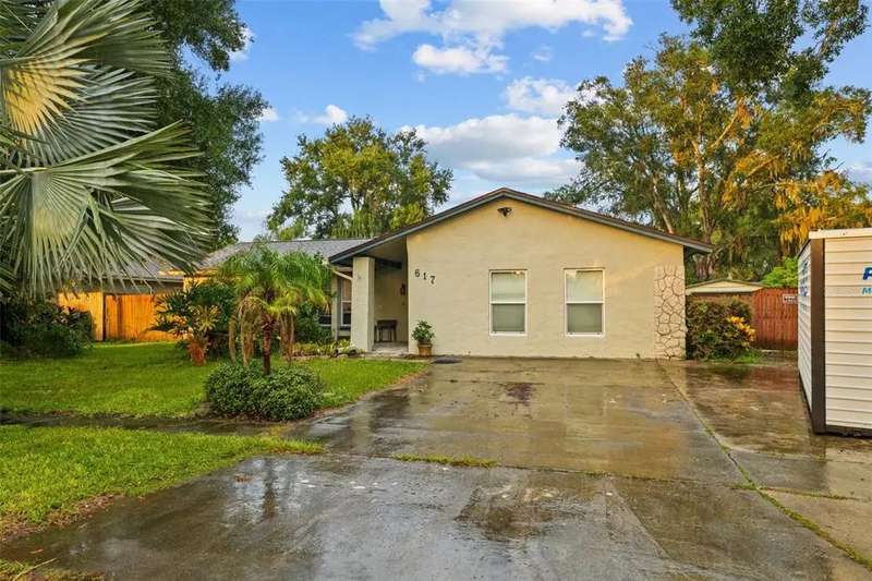 Tucked away in a quiet, pristine neighborhood, this four-bedroom home offers comfort, flexibility, and modern updates—with no HOA restrictions. Situated on an oversized lot, the property includes a double-wide carport with storage on both sides, an additional shed, and a fully fenced yard with plenty of room to add a pool. Inside, the split floor plan features a welcoming family room with a cozy fireplace and a kitchen equipped with stainless steel appliances and a breakfast bar overlooking the living space. The converted garage provides an oversized laundry room with extra storage and a versatile fourth bedroom that could also be used as a home office or workshop. Recent upgrades include a retractable front storm door screen, Wi-Fi thermostat, 30+ year roof shingles, and a new oversized AC system with both units replaced in 2020. A water treatment system was installed in 2019, and the home was completely re-plumbed in 2020. Several windows have been replaced with hurricane-rated glass, and sliders and the en suite door feature built-in blinds. Outdoors, enjoy your private kitchen and fireplace, perfect for year-round entertaining with family and friends. With its large lot, extensive updates, and prime location in a safe and peaceful neighborhood, this home is a rare find and won’t last long.
