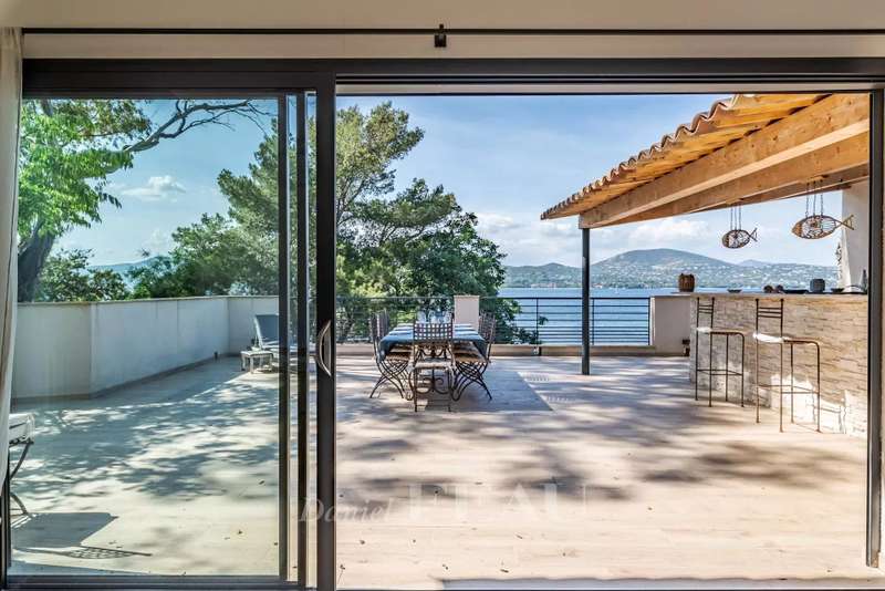This delightful about 200 sqm property set in a 1205 sqm plot benefits from direct access to the sea and a little private beach enjoying a view of Sainte-Maxime and the Gulf. Dating from the mid 1970’s, it includes a living/reception room with a fireplace bathed in sunshine thanks to wide patio windows, an open kitchen, a storage room and a bedroom with a shower room. Downstairs are three further bedrooms each with a shower room and direct access to a terrace facing the Mediterranean sea. Private boat garage 10m x 4m and private stairs lead down to the beach. A unique opportunity.