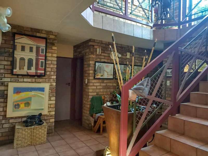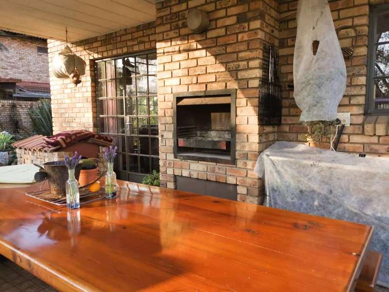 An exquisite home with a superb view of the garden, adjacent park and river. All this 400 square metre home needs is your presence. Enjoy quality family living in this family home, boasting open plan living areas - a living room with fireplace, open plan dining room and kitchen with underfloor heating, 5 spacious and sun-filled bedrooms with plenty of cupboard space, 2 bathrooms as well as guest toilets. A study and separate loft ensures plenty of space should you wish to work from home. A patio leads from the living areas where you can enjoy a scenic view of the luscious garden whilst using the built-in braai. A shimmering blue pool is situated in the garden, surrounded by trees and shrubs. Enjoy an evening stroll around the garden and be left with that extra feeling of space and tranquility with the park and river in front of you.