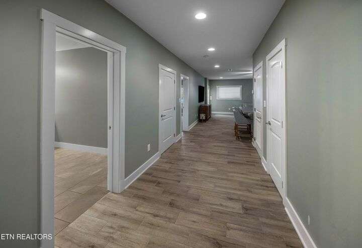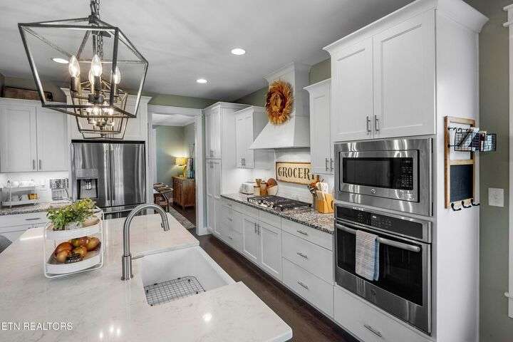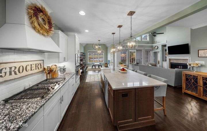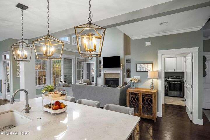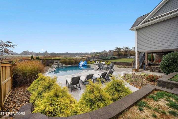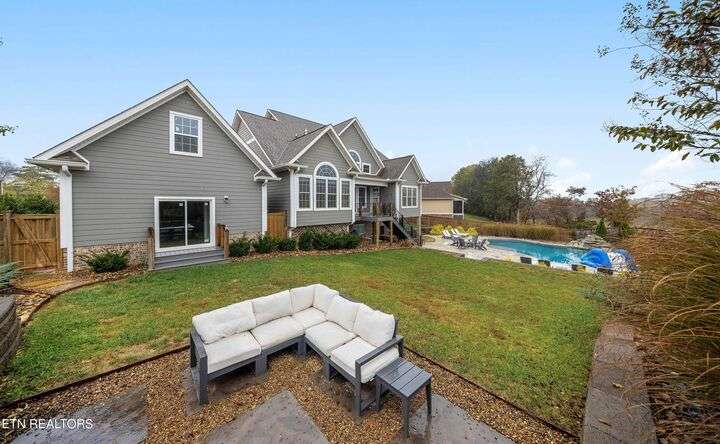 Experience unrivaled executive living in the prestigious Cross Creek subdivision of Maryville. This stunning Craftsman home sets the standard for family luxury, spanning 4,865 square feet with 5 Bedrooms, 4 Full Baths, and 2 Half Baths. Enjoy a quick stroll to two neighborhood parks and direct access to the highly sought-after Maryville City Schools zone. Step into your private retreat highlighted by a breathtaking, recently installed (2022) 33,000-gallon saltwater Gunite pool. The surrounding travertine decking, professional landscaping, wood privacy fence, and dedicated outdoor fireplace with patio create the ultimate setting for relaxation and entertaining. A unique asset is the secondary 2-car garage with a dedicated pool half bath and high doors to accommodate lifted vehicles. The open-concept floor plan showcases exceptional attention to detail. Finishes include Engineered Hardwood Flooring, Ceramic Tile, and Granite Counters throughout. The stunning chef's kitchen boasts a large island with a farmhouse sink and a suite of GE Stainless Steel appliances, including a 5-burner gas cooktop. Gather in the Great Room, featuring a two-story ceiling, a cozy fireplace, and direct access to the Trex-decked covered porch. The Main Level Master Suite is a sanctuary, offering two large walk-in closets and a luxurious en-suite bath with a pedestal soaking tub and walk-in tiled shower. The upper level provides three additional bedrooms, two full baths, and a large Bonus Room. The lower level is a fully finished haven, offering over 1,600 sq ft of flexible space with 8.8-foot ceilings. This area includes the fifth bedroom, a full bath, a spacious family room, a fully equipped second full kitchen. A dedicated bonus/media/workout room features professional gym flooring and is wired for home theater and gaming. This home utilizes Celect® Cellular Composite Siding—a superior, low-maintenance material that offers double the thermal value. Utility peace of mind is assured with an 84-gallon Rheem Marathon electric water heater backed by a lifetime warranty. For optimal connectivity, the CAT5 and RG6 wiring use a high-performance ''home run'' installation. This is more than a home; it's a meticulously crafted lifestyle. Call today to schedule your private tour!
