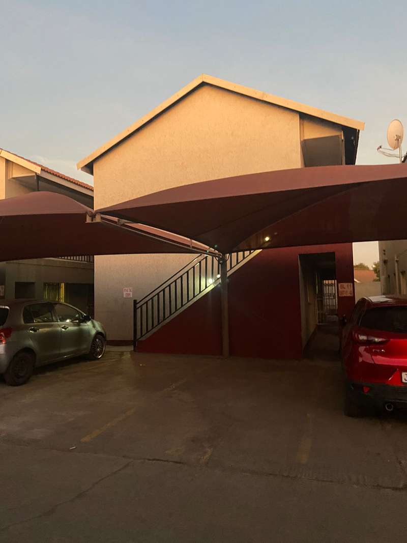 A 52m2 apartment in Eloff town for sale. Close to town. Unit consist of 2 bedrooms, bathroom, open plan kitchen and lounge. Unit situated on second floor. Solar geyser. Pre paid electricity. Single carport. Secured and automatic gate. Monthly levy of R700. Rates ans taxes - R400 pm