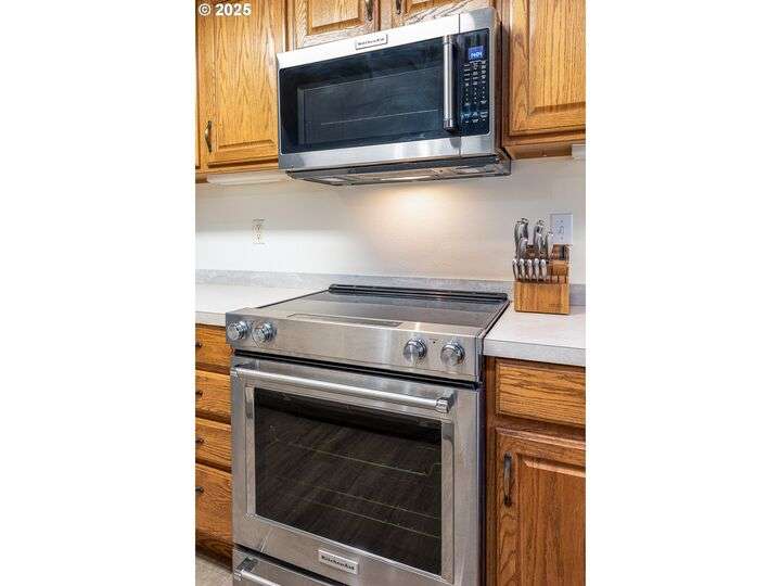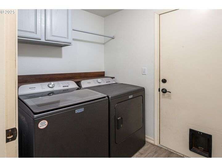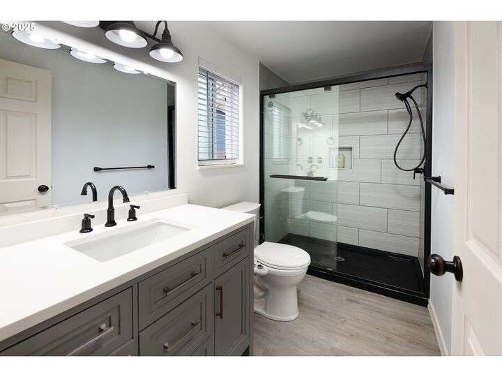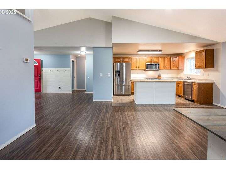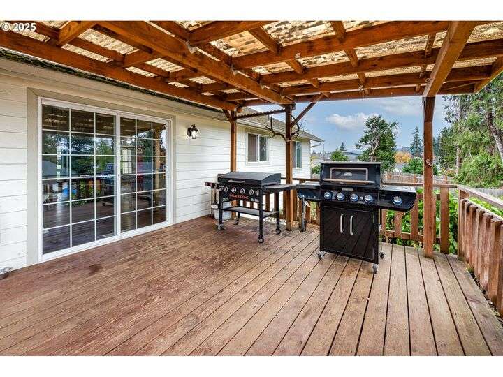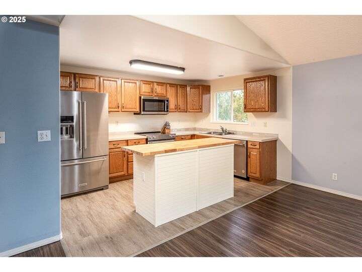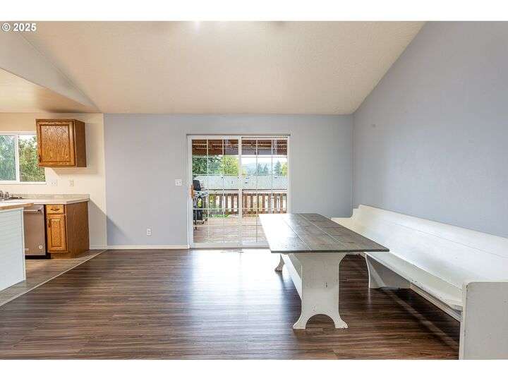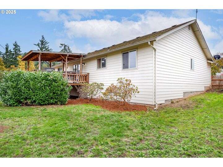 Welcome to this well-maintained 3-bedroom, 2-bathroom home offering 1,472 square feet of comfortable living space. The living area features vaulted ceilings and an open-concept layout that seamlessly connects to the kitchen and dining area. The kitchen includes a large island, pantry, and Kitchen Aid stainless-steel appliances. The spacious dining area opens to a covered back deck, ideal for summer BBQs and family gatherings. The primary suite features a walk-in closet and a stylishly remodeled ensuite bathroom, while the second bathroom has also been thoughtfully updated. Laminate flooring flows throughout the home, adding warmth and easy maintenance. Situated in a quiet cul-de-sac, this property is near Harrison Elementary, Lincoln Middle School, and historic downtown Cottage Grove. As part of the sale, the sellers will provide a brand new roof to be installed before the close of escrow, offering peace of mind for years to come.This home blends comfort, convenience, and value — come see it before it’s gone!