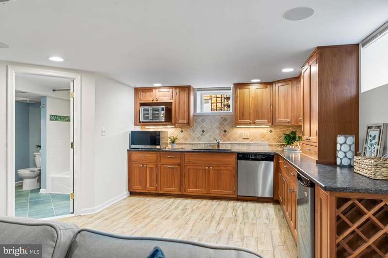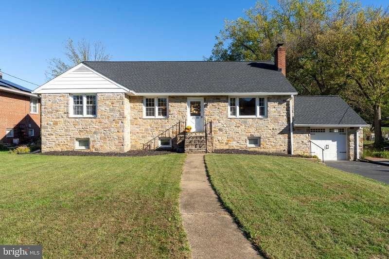 Experience classic Catonsville charm in a genuine stone-front rancher that lives far larger than it looks! Designed on three beautifully finished floors with an estimated 3,500 square feet of living space - including a modern upper level and a versatile finished lower level - this home has been reimagined with flexibility in mind! Thoughtfully updated and meticulously maintained throughout, including a 2024 roof & gutters, and a freshly painted interior over the last two years. Three custom skylights fill the top floor with natural light, this exquisite retreat, with two separate mini-split heating and cooling zones, can serve as two additional bedrooms or as a luxurious owner's suite complete with a sitting area, office or nursery, a dual-vanity full bath with heated tile floors, a beautifully tiled tub/shower combo and a large walk-in closet. The main level blends classic ranch appeal with three large bedrooms, including a primary with its own ensuite full bath, bonus main-level laundry, and a large full bath in the hall. Enjoy a spacious living room with a wood burning fireplace and dining room with crown molding and chair rail. There are hardwood floors throughout the main and upper levels, and a bright kitchen with a picture window overlooking the amazing backyard. The fully finished lower level expands your living options with a huge, open family room, bedroom area with a gas fireplace, office, custom 2nd kitchen space, fourth full bath, and a second laundry room with workshop or home gym space. This impressive level, accessed from the main floor or through its own separate entrance, offers endless versatility - ideal for multi-generational living or an in-law suite - with gorgeous ceramic tile flooring throughout, an entertainment space with built-ins, and beautiful cabinetry and counter space in the 2nd kitchen area. In addition to the generous living space throughout this home, there are large closets and ample storage on all three levels! Outdoors discover a large composite deck with pergola, spacious shed, stone patio, raised garden beds, bubbling pond, brick and stone walkways, and an attached garage. This picture-perfect home blends timeless curb appeal with modern livability. ""Life is great in 21228!