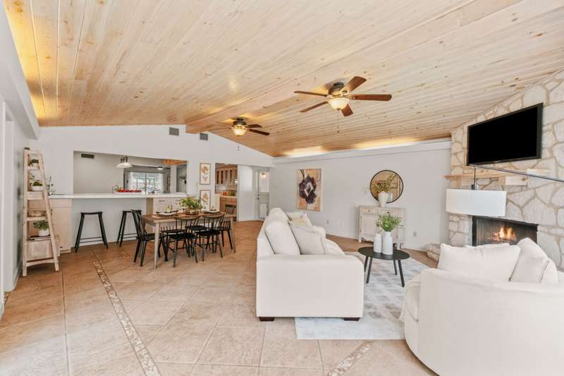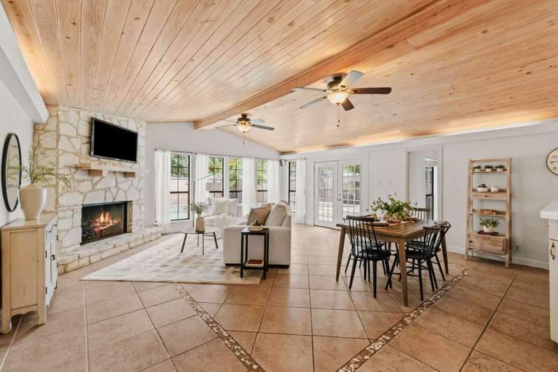 Welcome to 219 Ridgehaven Place, a stunning single-story retreat in the sought-after Northridge neighborhood, zoned to the highly acclaimed Alamo Heights ISD. This 3-bedroom, 2-bathroom home measuring nearly 2300 square feet offers an elevated living experience with a layout designed for comfort. Step inside to an open-concept design where rich hardwood floors guide you into a bright living area. A marble-surround gas fireplace creates a warm focal point, ideal for cozy evenings. The space flows effortlessly into the kitchen, featuring ample cabinetry, a butcher-block island, and a modern breakfast bar -great for casual meals or entertaining. Just beyond, a second living area with its own stone-clad gas fireplace adds versatility, whether you're hosting guests or enjoying a quiet night in. The dining area, framed by large windows and French doors, is soaked with an abundance of natural lighting and opens to the outdoors, making it perfect for gatherings. The primary bedroom offers a serene escape with hardwood floors and a welcoming ambiance, while the two additional bedrooms provide flexibility for family or guests. A bonus room adds even more value -use it as a guest suite, a home office, or a quiet study to suit your needs. The backyard is a true private oasis. A sparkling pool is ready for those summer days, and a stone fire pit sets the stage for memorable evenings under the stars. Combinations of surrounding mature and palm trees provide shade and a sense of seclusion, making this outdoor space a true retreat. With two distinct living areas, a smart layout, and a prime location, 219 Ridgehaven Place is a rare find. Schedule your private tour today and see why this home is the perfect place to start your next chapter! - 10/3/2025 8:15:18 PM