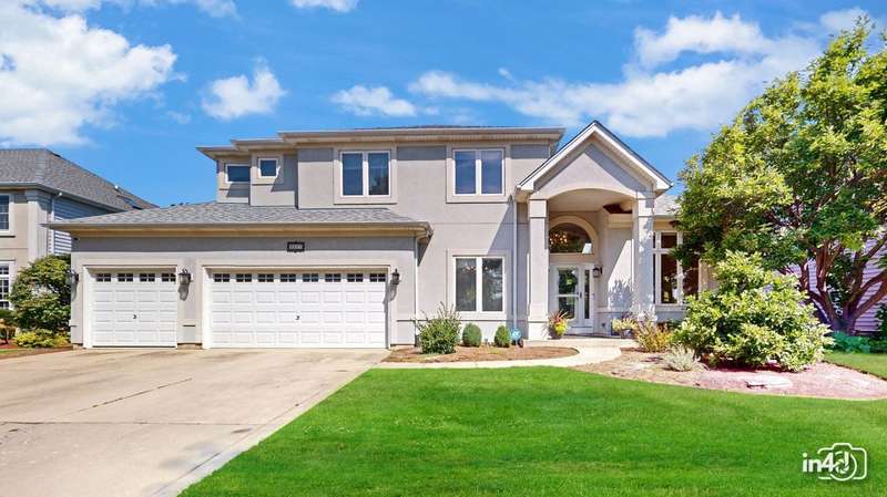 Over $200K in recent renovations have transformed this Steve Carr custom home into a modern showcase. With one of the most unique layouts in Naperville thoughtfully reimagined for today's open concept lifestyle. This 5-bedroom, 3.1-bath residence in Burnham Point delivers new construction luxury in an established, highly desirable community. The first floor has been fully renovated and opened up, with walls and pillars removed to create a seamless flow for everyday living and entertaining. At its heart, the 2022 chef's kitchen features Studio 41 custom cabinetry in crisp white and bold black, striking Super White Premium Quartzite counters, designer lighting, and four built-in wine racks. High-end appliances include a double oven, 5-burner cooktop with downdraft, refrigerator, and dishwasher. A dramatic floor to ceiling tiled fireplace anchors the expansive Great Room, where the Living and Family Rooms combine into one light-filled gathering space. A formal dining room and casual dinette provide options for every occasion, while refinished hardwood floors (2018) and a custom Shaker staircase with iron spindles add timeless architectural detail. The main level also includes a flexible 5th bedroom, currently styled as a California Closets designed office with built-in desks and abundant storage. Upstairs, four generously sized bedrooms with vaulted ceilings include the impressive Primary Suite, offering two walk-in closets (one customized by California Closets) and a spa-inspired bath with dual vanities, soaking tub, and separate shower. An additional full bath with double vanity provides comfort and convenience for family and guests. The fully finished lower level, completed in 2023, expands the living space with brand-new flooring, a stylish full bath, and endless possibilities for recreation, entertaining, or guest quarters. Practical updates add peace of mind: roof (2015), HVAC, humidifier, and water heater (2016). Outside, enjoy a landscaped and fenced yard with patio, sprinkler system, and an oversized 3-car garage outfitted with custom cabinetry repurposed from the original kitchen. Located within the acclaimed Neuqua Valley High School boundary, this turnkey home combines timeless craftsmanship, distinctive design, and every modern convenience, a rare opportunity in one of Naperville's most desirable neighborhoods. (Note: ADT doorbell excluded)