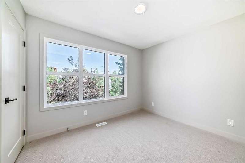 This isn’t just another townhome—it’s a complete lifestyle upgrade. Modern design, low maintenance living, and your own private outdoor spaces all wrapped up in one of Calgary’s most established inner-city neighbourhoods. Welcome to Windsor Park and a home situated FACING THE PARK - where treelined streets, greenspace, and the river pathway network set the tone for a connected city lifestyle. You’re just minutes from Chinook Centre, Britannia Plaza, boutique shops, markets, and some of Calgary’s best restaurants. Coffee shops, fitness studios, and the Calgary Golf & Country Club are all nearby, and downtown is an easy commute. Spread across three levels and designed with a NORTH TO SOUTH ORIENTATION, this home is filled with natural light morning and evening. The main floor sets the stage with 9’ CEILINGS, WIDE PLANK FLOORING, and a SLEEK OPEN CONCEPT KITCHEN featuring full height cabinetry, quartz counters throughout home, and generous storage. Step seamlessly from inside to your FRONT PATIO OR PRIVATE FENCED SOUTH BACKYARD DECK AND YARD—perfect for morning coffee or evening entertaining. On the second floor, you’ll find two SPACIOUS BEDROOMS BOTH WITH WALK IN CLOSETS, plus a full bathroom and laundry designed with convenience in mind. Then it’s up to THE ENTIRE THIRD LEVEL—IS YOUR OWN PRIVATE MASTER OASIS. Here, a LOFTED DEN, a SUBSTANTIAL WALK IN CLOSET, and a SPA INSPIRED ENSUITE create a luxurious escape all your own. The basement is ready for your personal vision: a guest suite, home gym, or creative workspace. Outside, a detached single garage with 220V rough-in for EV charging and extra storage completes the package. With its blend of style, function, and unbeatable location, this is a rare chance to own a BRAND-NEW TOWNHOME IN THE HEART OF CALGARY’S INNER CITY—ideal for anyone who wants modern living without compromise.
