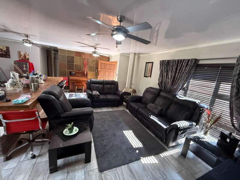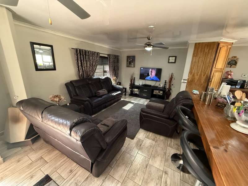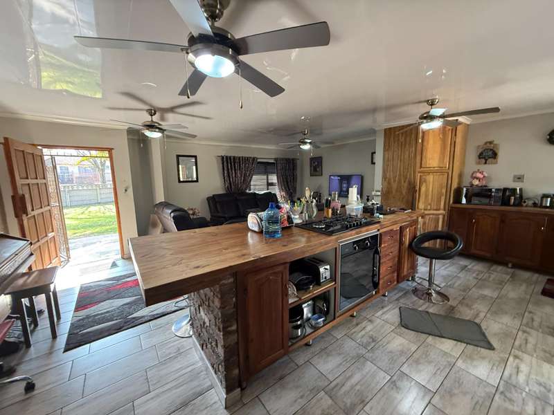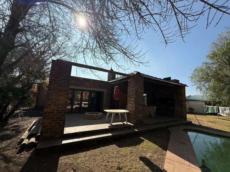 Exclusive Mandate! Your Dream Family Home Awaits! This charming 3-bedroom home is perfectly located and offers the ideal blend of comfort, style, and entertainment, making it the perfect haven for your family. Step inside and discover a beautifully designed interior. The heart of the home is the open-plan kitchen, boasting a beautiful layout and a generous breakfast nook, perfect for casual meals and morning coffee. Flowing seamlessly from the kitchen is a welcoming sitting room, providing a cozy space for relaxation. Entertainer's Delight Prepare to be impressed by the stunning rustic dining area, complete with a built-in braai ?Çô ideal for year-round entertaining. This space effortlessly leads to a dedicated bar area, setting the stage for memorable gatherings. From both the dining and bar areas, you have direct access to the inviting swimming pool and a fantastic boma area. This entire setup creates an incredible entertainment zone, perfect for hosting family and friends. Outdoor Oasis & Added Conveniences The property sits on a spacious yard, offering plenty of room for outdoor activities. You'll also find double garages with additional parking, ensuring ample space for vehicles. For added peace of mind, a JoJo tank is installed with active water supply from the the borehole for backup water supply. An outside laundry room keeps the main house clutter-free and adds to the home's practical appeal. This beautiful home is more than just a house; it's a lifestyle waiting to be embraced. Contact Stoffel for more info and assistance.