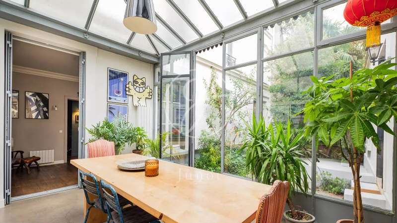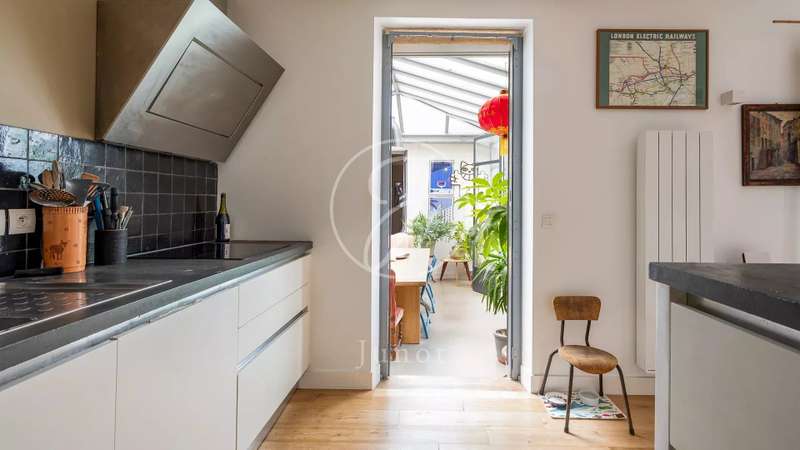 Located on a quiet street, in a well-maintained condominium, this charming house of 138.97sqm loi Carrez and 140.12sqm floor area is spread over three levels. The property is distinguished by its atypical character and functional layout. On the main level, there are two living rooms, an open-plan fitted kitchen, a dining room under a splendid glass roof that links the two wings of the building, a first bedroom, a shower room and a separate toilet. Upstairs, two further bedrooms with a bathroom and separate toilet. Downstairs, a fourth bedroom, shower room and toilet. The spaciousness of this home allows for optimal family organization. Outside, a wooded garden offers a privileged space for relaxation, in absolute calm. This warm and original property will appeal to those seeking a different kind of living space, combining comfort and serenity. A cellar completes the property. EXCLUSIVITY.