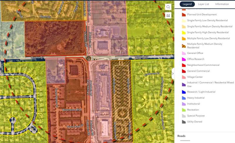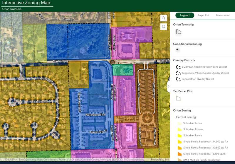 Lot split possible. 1.68 acres (1.43 net excluding R.O.W.) just West of the intersection of Baldwin Rd and Maybee Rd. Zoned R2 with an overlay zoning of Gingellville Village Overlay District. The intersection includes newer built Walgreens, CVS, Chase Bank, Bad Brad’s BBQ, Johnny Black’s Public House, Orion Grill and Great Lakes Athletic Club. This parcel is adjacent to Redwood Apartments to the South. The overlay district includes commercial, office and multi family uses and may require a PUD which is typical for this zoning district. The subject parcel is rolling with some slope and mature trees in the Southwest corner. Ideal use would be a multi family development, early learning school, office, senior living or a restaurant. Single family or condos may also be a suitable use for the property. Land contract terms available for qualified buyers. Underlying zoning is R2 single family and sewer is located to the south at the edge of the Redwood Apartment development or about 185 ft East along the south side of Maybe Rd.