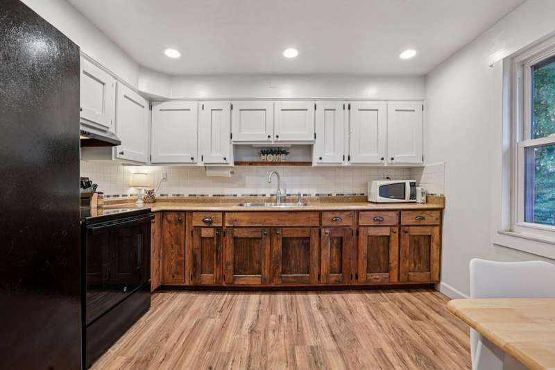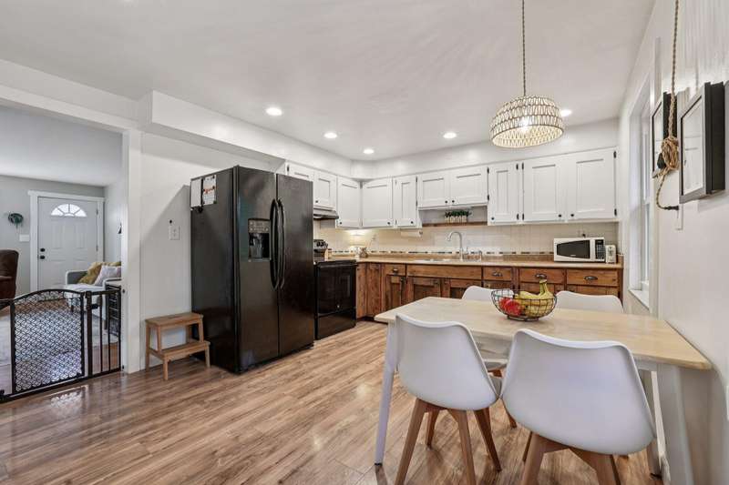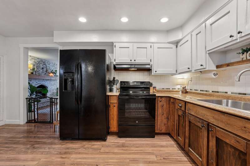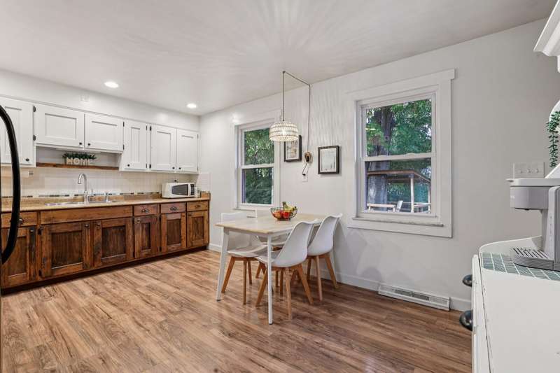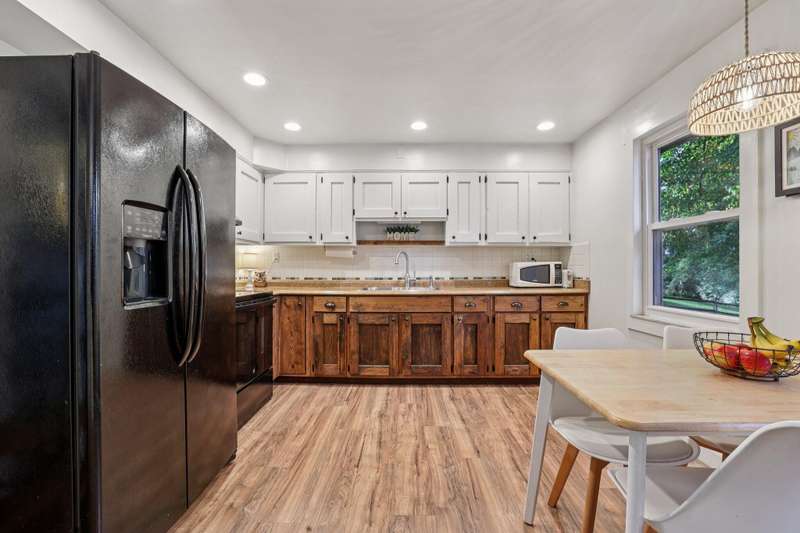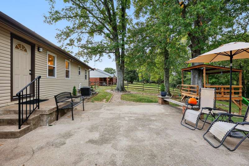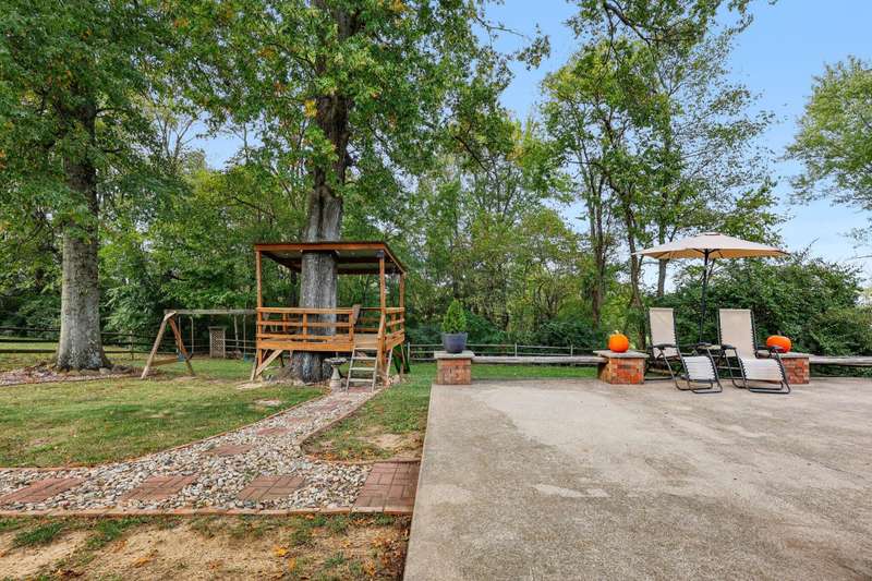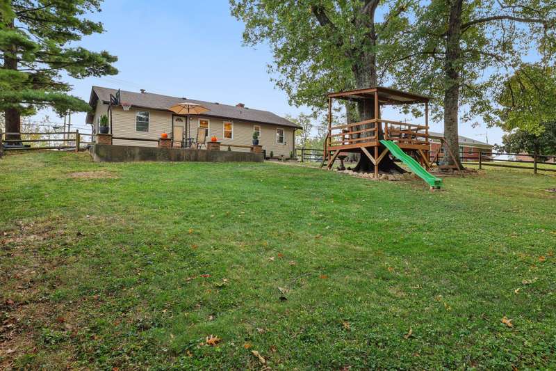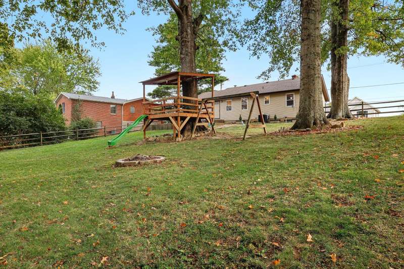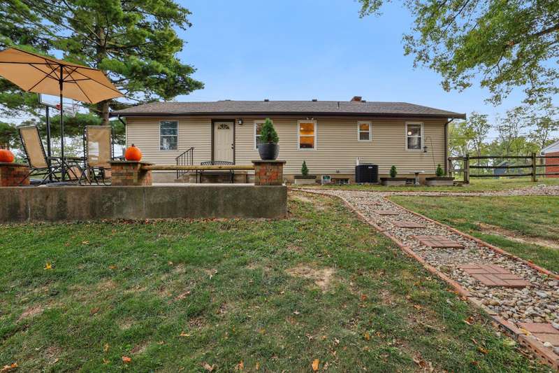 100 percent Financing Available Through USDA! This truly immaculate 3-bedroom, 2-bath home combines charm, comfort, and incredible outdoor living. The custom-designed fenced yard is perfect for entertaining, featuring a patio, walking paths, tree house, basketball area, and a gate leading to additional wooded space. Inside, enjoy an open, light-filled layout with hardwood floors, neutral dcor, and updated lighting throughout. The custom kitchen offers floor-to-ceiling cabinetry, stainless steel appliances, and a German smear wood-burning fireplace with cedar mantle as a stunning focal point. The remodeled bath includes ceramic tile and a new vanity, while the partially finished lower level provides flexible living or recreation space. The old cistern has been converted into an extra basement area, ideal for storage or a storm shelter. Additional highlights include a new AC, updated furnace, dimensional roof, bay window, cased windows, amazing curb appeal, and an oversized driveway & garage. Conveniently located just minutes from shopping and restaurants, this home perfectly blends style, warmth, and function.