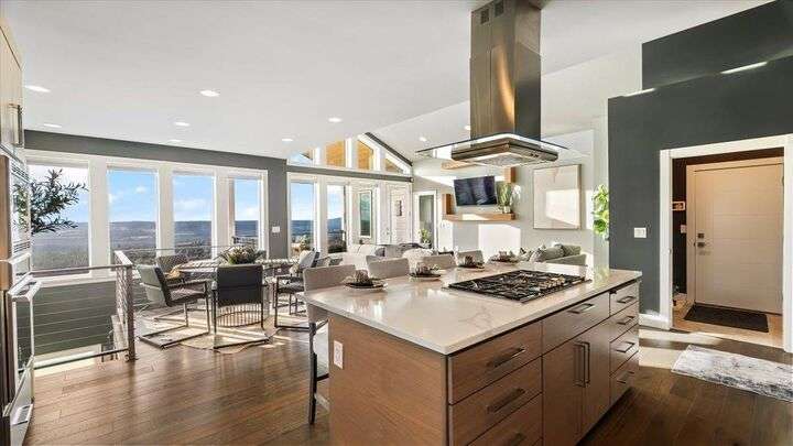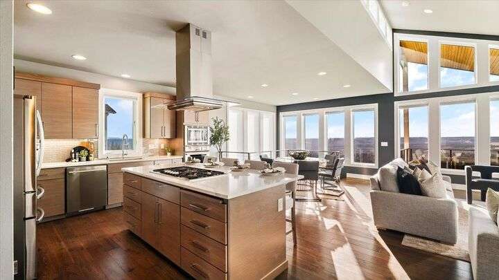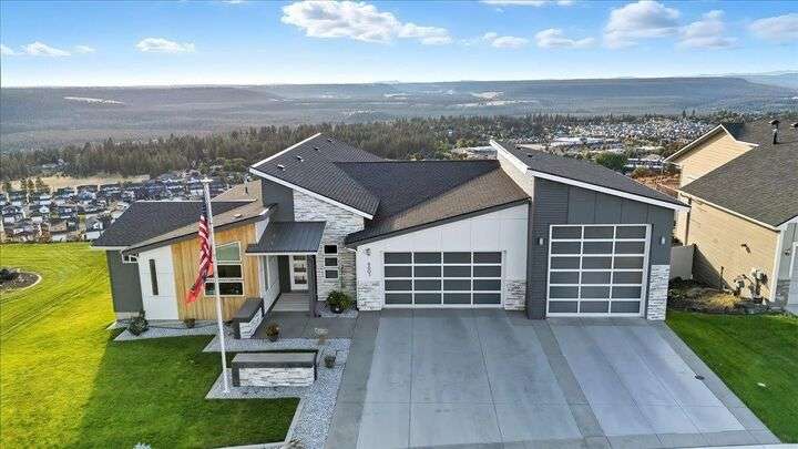 Modern Elegance with Unmatched Southwest Views! Welcome to this stunning luxury home perched on Five Mile Prairie in the sought-after Westwinds neighborhood. Open floor plan and walls of windows. Every corner of this home is designed to maximize the breathtaking southwesterly views. The chef’s kitchen flows seamlessly into the living and dining areas. The main level offers both convenience and comfort, featuring a spacious primary suite w/ a custom elevated bed area & a spa-inspired ensuite w/heated tile floors, a large soaking tub, walk-in shower, and custom-designed closet. You’ll also find a versatile office or additional bedroom with its own private ensuite. Quartz counters thru-out. A custom cable rail system leads downstairs to a daylight walkout basement w/ large family room and game area, 4 additional bedrooms and 2 full bathrooms.Outside enjoy the covered deck w/concrete floors and cable railing plus the covered lower patio. Generous parking for 3+ vehicles, plus room for your RV, boat or toys.
