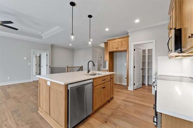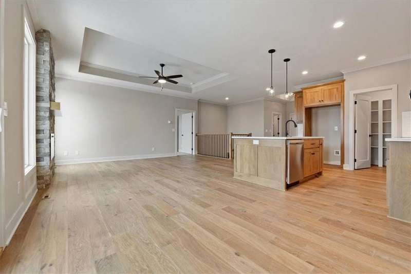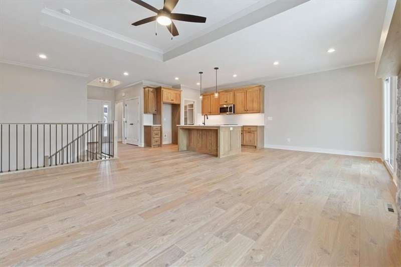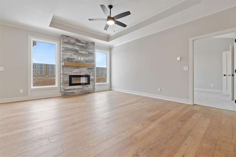 The Newberry by Lambie Homes offers 3-bedroom, 2.5-bathroom, reverse 1.2 floor plan. The grand 9' foot ceilings through the main level, this family room features a floor to ceiling stone with 40 Allusion electric fireplace and an inviting dining area that opens onto a covered patio/deck. Enjoy the primary suite, walk-in closet and laundry all of the main level. Downstairs is a fully finished lower level with a family room, two additional bedrooms, and a full bath. Enjoy the vibrancy of Mize Hills planned amenities, including walking trails, a pool, and nearby Cedar Station Park and Mize Lake. Photos are of a different home but the same floor plan; therefore, colors and style may vary from the photos shown. Photos are to show finish quality only! High end standard finishes include: Quartz countertops, pre pipe for radon, 50 gallon water heater, black door lever hardware and hinges, and covered deck. *Model home open Wednesday-Sunday, 12:00pm5:00pm.* Estimated completion date is December 2025. Reach out to community agent for more details!