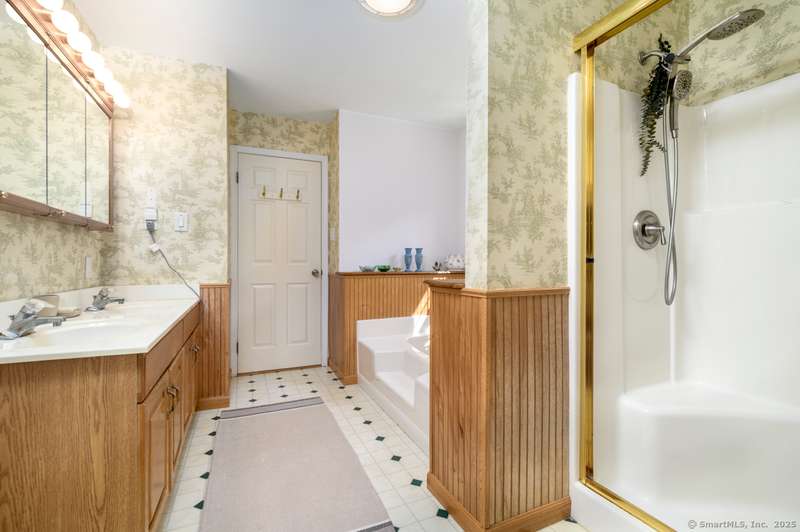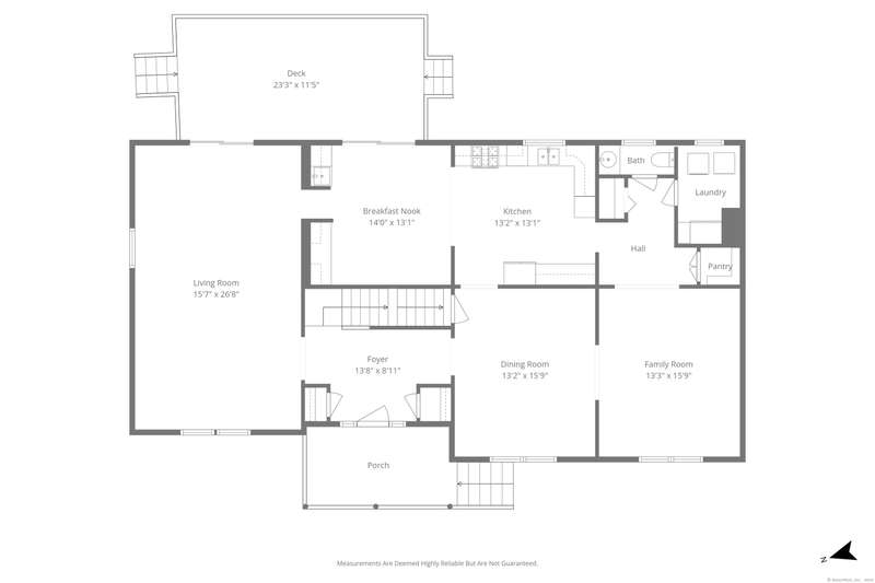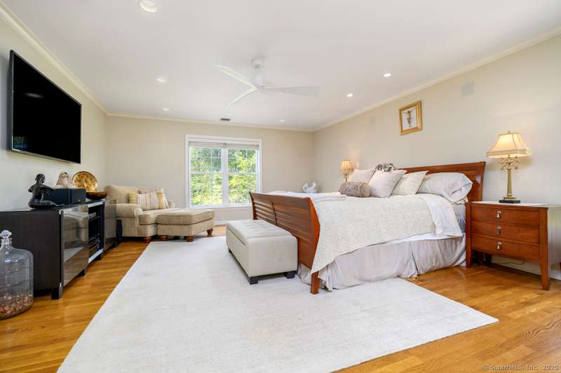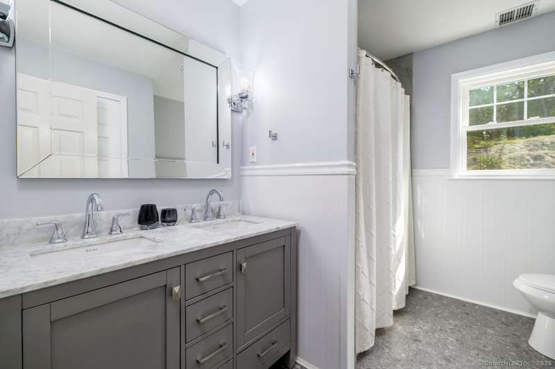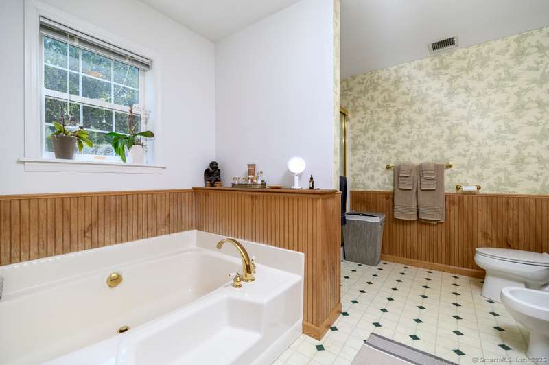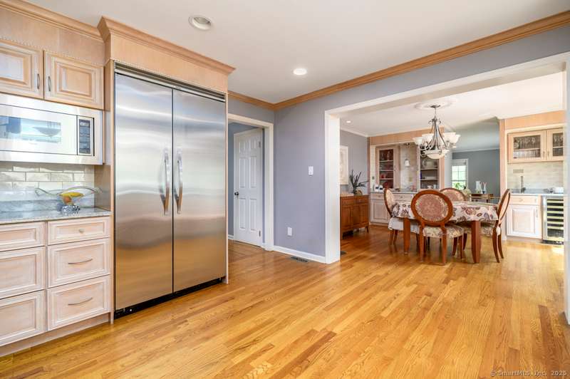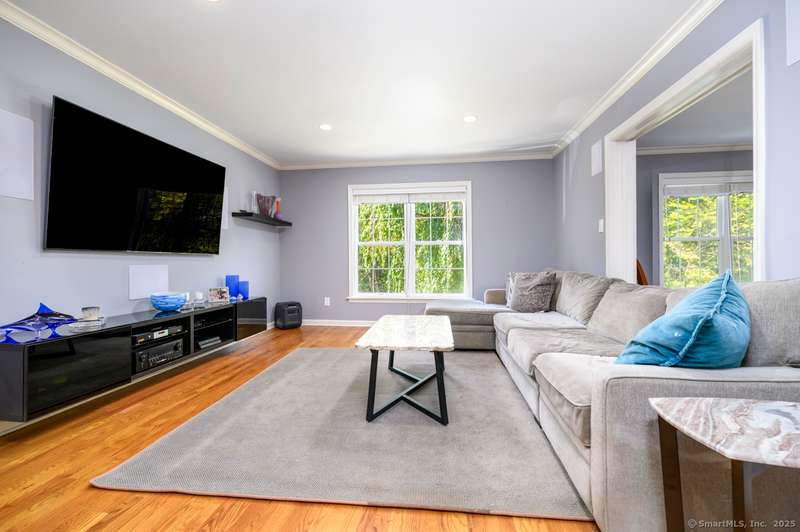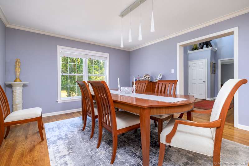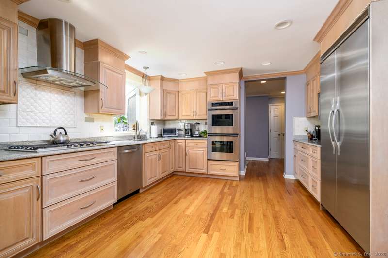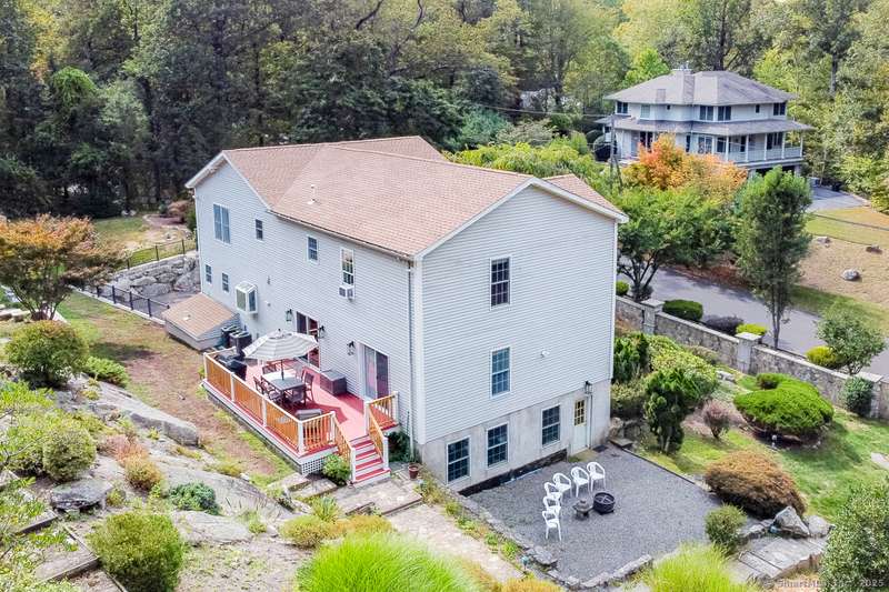 Welcome to this stately center hall colonial with a gracious 2 story entry hall nestled on a private 2-acre lot. Offering timeless charm and generous sized rooms, this home features large, light filled rooms perfect for both everyday living and elegant entertaining. Recent upgrades include a brand new roof, all new HVAC system, and a new on-demand hot water heater, so you can move in worry-free and enjoy this beautiful home. At the heart of the home, the custom-designed kitchen is a chef's dream. Outfitted with top-of-the-line appliances, Thermador and Viking, and custom cabinetry offers ample storage along with granite counters and a wine-chiller. The second floor has 4 generous sized bedrooms with large closets and the hall bath has been completely renovated. The finished lower level offers a possible private in-law suite with it's own entrance perfect for multi-generational, or au pair living. Designed with ease this home features 2 laundry rooms and a 3 car garage which provides am