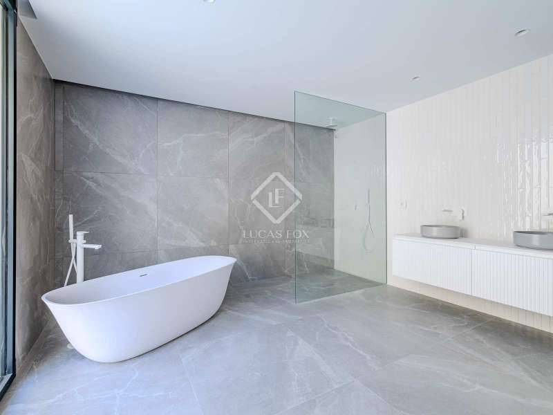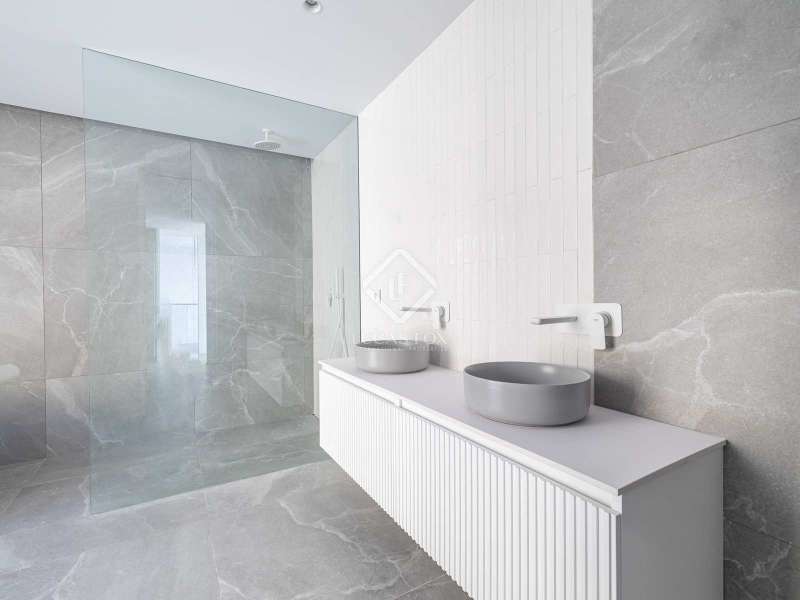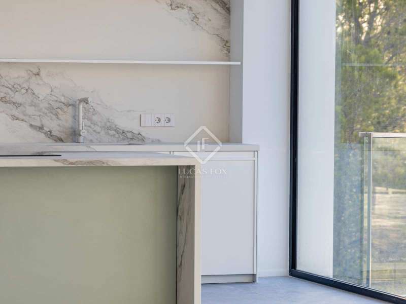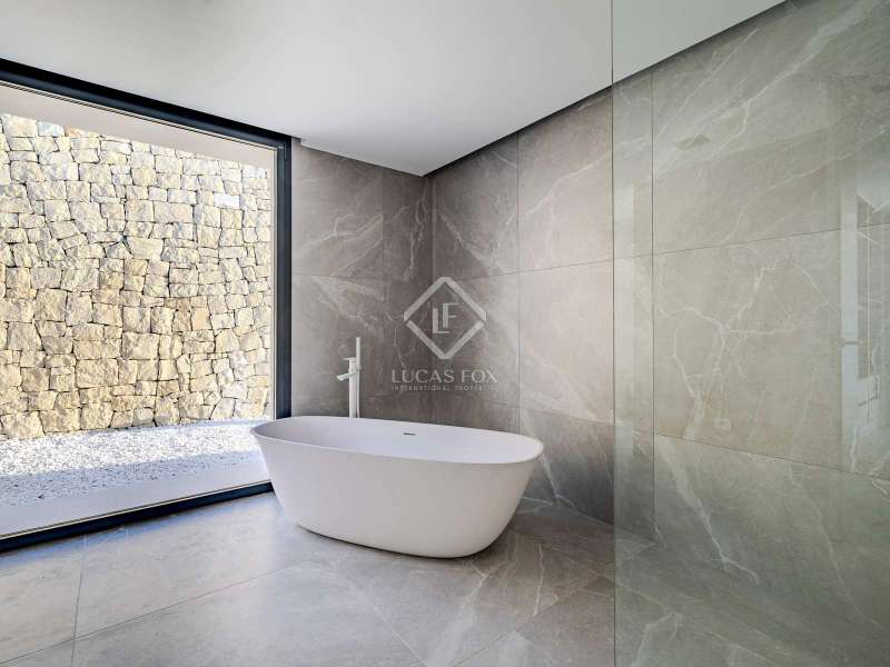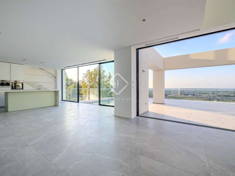 A stunning, 4-bedroom suite property with indoor and outdoor pools, private spa and breathtaking views of the Mediterranean Sea, valley and Denia coastline, set in the sought-after residential development of La Sella. Available as key ready for Summer 2025. This incredible property is set at the end of a cul-de-sac, and distributed over three levels, with a private 4-person elevator to connect the levels. The house is currently under construction, with an expected handover date of June 2024. The architectural features of this property include high ceilings and large floor-to-ceiling glass façades, offering superb vistas from every room, and creating a harmonious indoor-outdoor feel, with bright rooms whilst protecting the inside from the harsh summer sun. The villa is one of two luxury products, and comprises: car entrance with car port, entrance hall with stunning double height ceiling and possible office or library area and a fantastic master bedroom with en-suite bathroom with double sinks, bath and shower, plus dressing room and a private terrace. The first of the lower levels is dedicated to the main living area, with open-plan living/dining/kitchen, all with the highest quality finishings, a hidden laundry area, guest toilet, and access to the wonderful terrace with pool, relaxing and dining areas, and a summer kitchen, all offset by the incredible backdrop behind. Then on the second of the lower levels, are three additional suites, each with dressing area and en-suite bathrooms, plus private balconies, and an additional living space which could be used as home cinema, gym, or bodega area, plus an indoor pool, spa area with Hammam steam room, shower and toilet. Practical extras include: underfloor central heating with aerothermal heat pump, also for hot water centralised hot and cold air conditioning with individual thermostats, the properties will be A rated for energy efficiency, offering low maintenance costs, and with a possibility for automated home systems, floor-to-ceiling interior doors with hidden hinge systems. Contact us for further information.