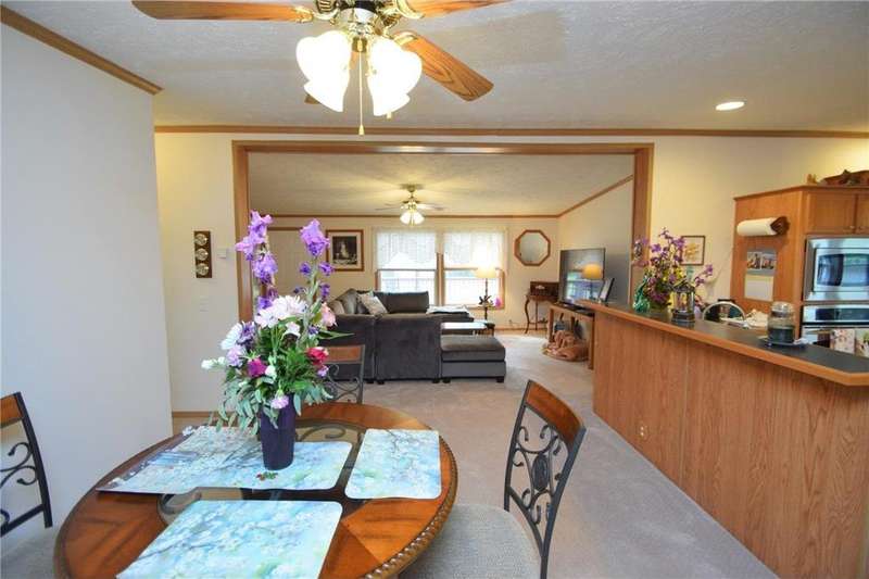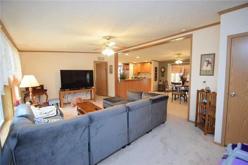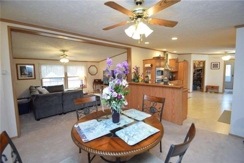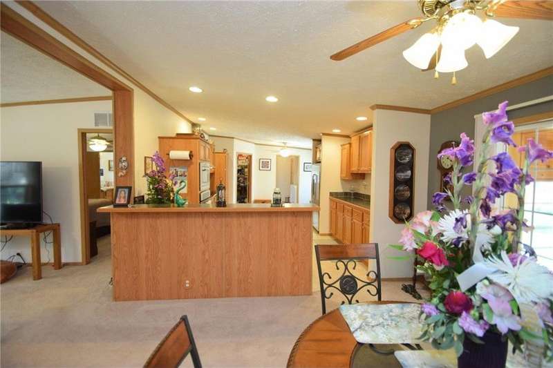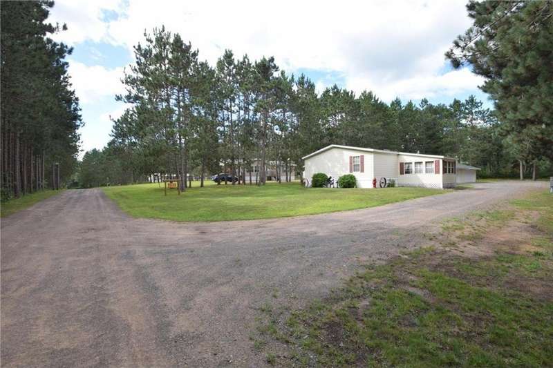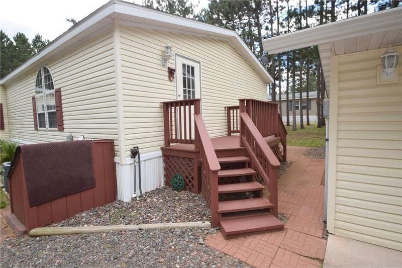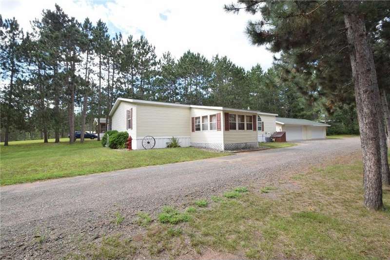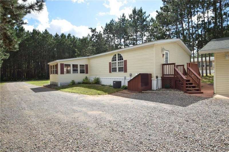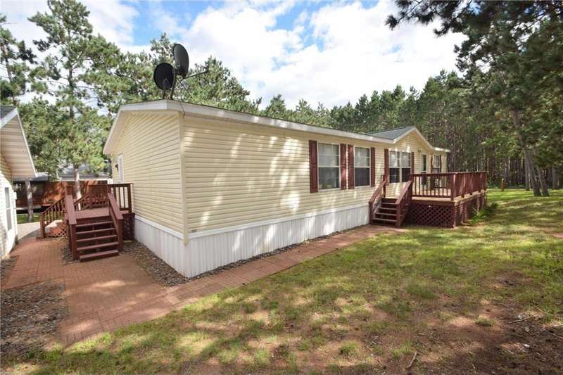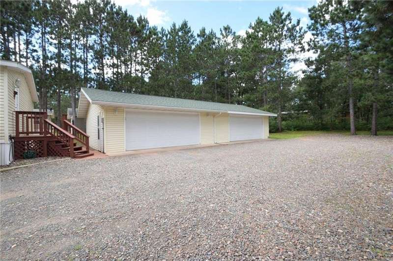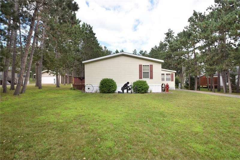 A truly rare find in Dufours Campground on the Yellow River! This spacious year-round manufactured home offers the perfect blend of updated living and incredible garage space. This charming 3-bedroom, 2-bath home has a thoughtfully designed layout and upgraded kitchen that is the heart of the home, featuring modern appliances and ample counter space that flows seamlessly into the dining and living areas. The home provides year-round comfort with a forced-air furnace and central AC. Large master suite with a master bathroom, and a three-season porch for extra entertaining space. The real showstopper is the incredible 4-car detached garage. Perfect for the hobbyist or anyone needing serious storage, this space includes a heated and insulated 2-car stall, ensuring your vehicles and projects are protected from the elements. The large yard provides plenty of space for outdoor activities, and as a resident of Dufours Campground, you'll have access to a wealth of amenities, including an outdoor swimming pool, a boat launch on the Yellow River with endless boating up to Yellow Lake, with two convenient laskeside bar/restaurants. This amazing home and property are available with a monthly lot rent of just $475. Don't miss this opportunity to own a piece of paradise with exceptional features in a fantastic location! This is in a 55+ community.