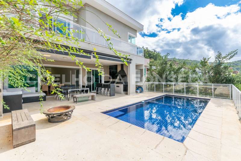 Casa no condomínio TAMBORÉ I, com 1376m² área construída, 6 dormitório(s), 6 suíte(s), 17 vaga(s), 9 banheiro(s), piscina, escritório, sauna, mobiliado (a), ar condicionado, dep. de empregados, elevador, aquecedor solar, pé direito duplo.