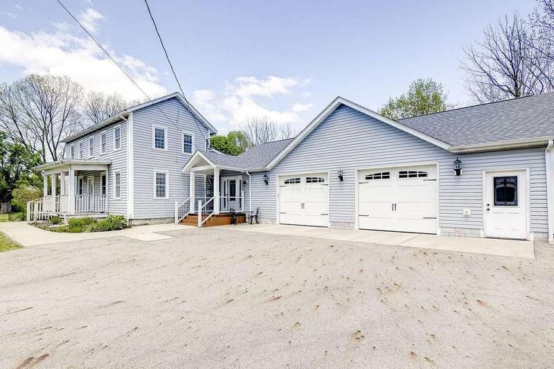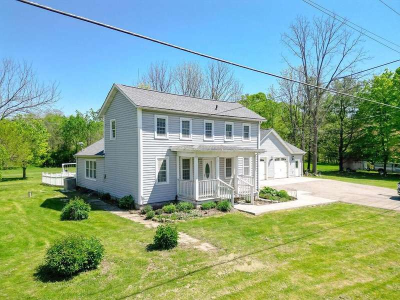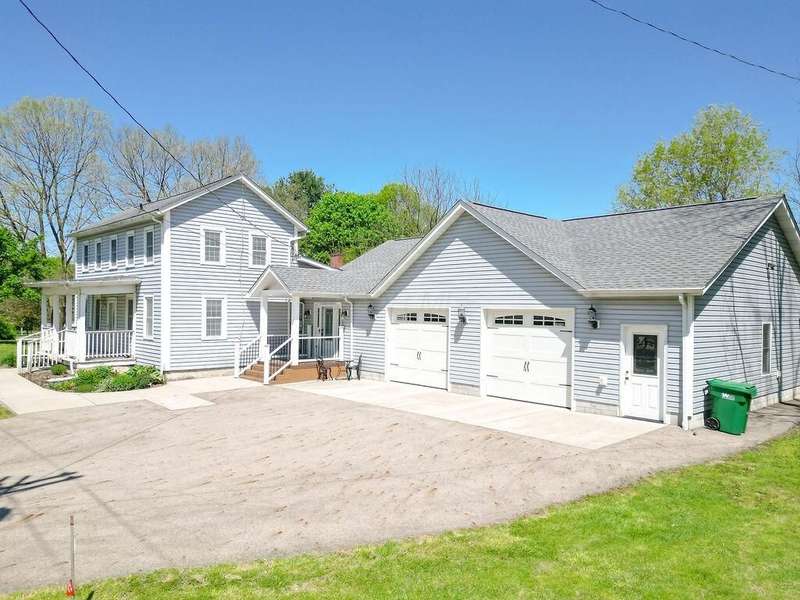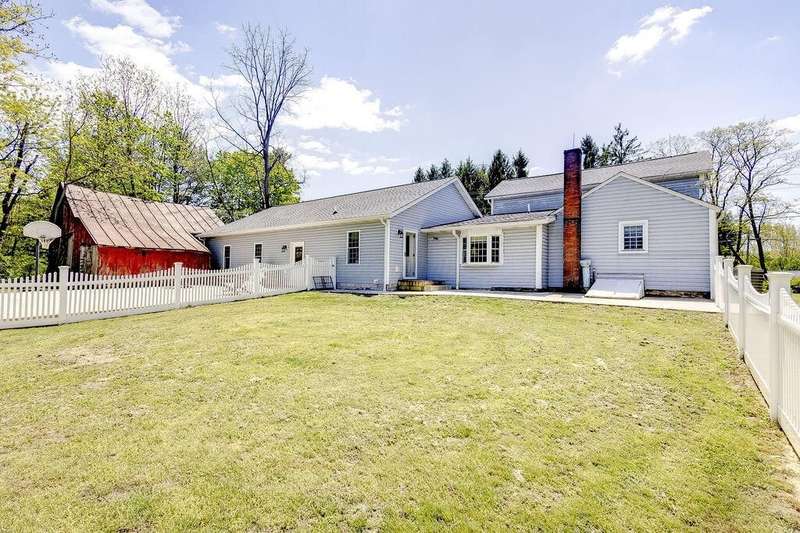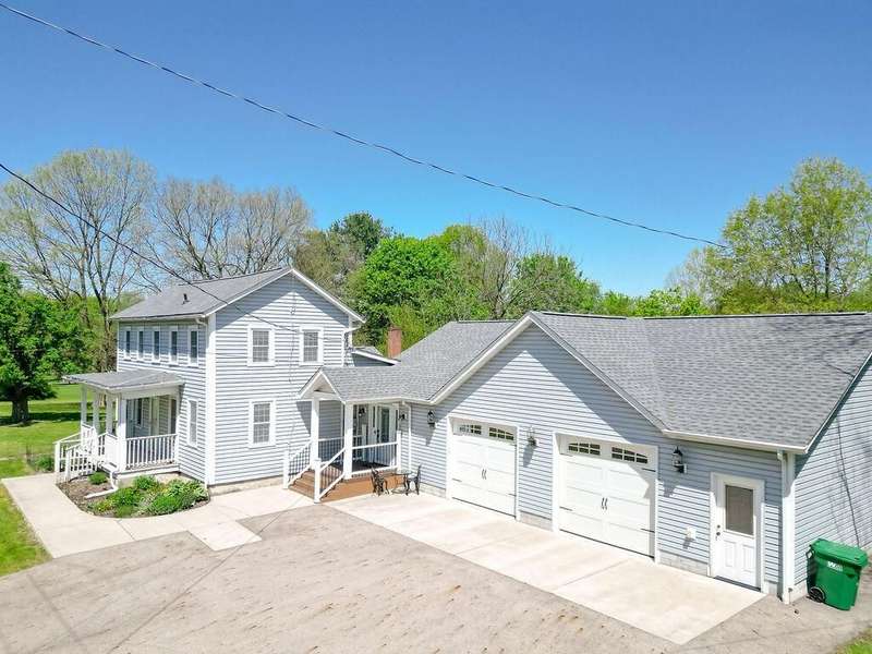 Amazing 9.62 acre, wooded property with stream that you cannot find anywhere else! Step into timeless charm with this 3-bedroom, 2.5-bath farmhouse offering 2064 sq ft of living space, nestled on nearly 10 acres of serene, picturesque land. The property features mature woods, a peaceful stream, and open space perfect for enjoying nature.Includes a 2018 addition with a spacious living room, laundry area, and heated 3-car garage with electric heat. Hardwood floors throughout, small fenced yard area, and large patio. 5 minutes to Johnstown, 10 minutes to 161 and Intel. A must see property!