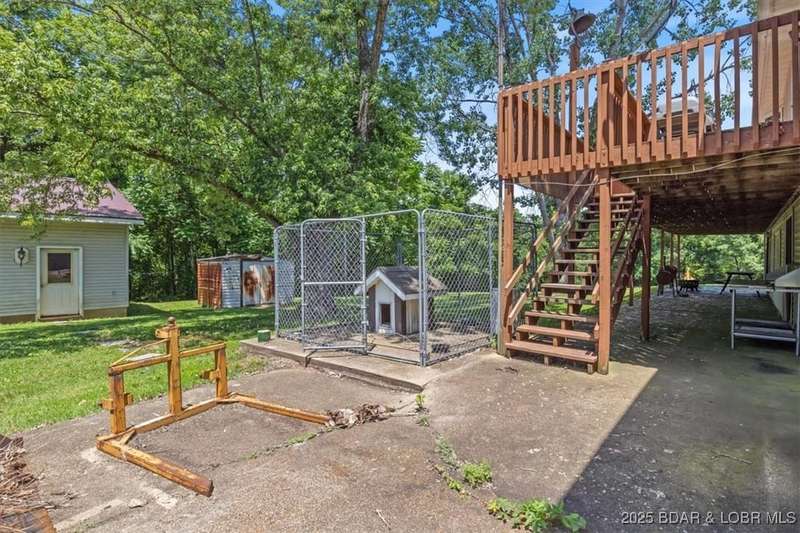 Hunters paradise meets peaceful country living on this incredible 94-acre property just 3 minutes from Lake of the Ozarks access! This 4 bed, 4 bath has a large, spacious living room, huge kitchen with tons of cabinets, and convenient main-level living. The lower level has an additional kitchen area and is partly unfinished with tons of potential for more bedrooms, an office, man cave, etc! There are two washer/dryer hookups (one on each level), an inviting covered front patio, a large deck overlooking the backyard and a patio below. The yard around the home is nearly completely flat! Storage and workspace are no issue with the 2-car attached garage, 50x32 shop with three garage doors, and a 32x18 lean-to shed. The acreage is mostly timber (never been logged), with an abundance of mowed trails throughout, a wet weather creek, and a few open areas that would be perfect for food plots. Whether youre looking to hunt, explore, or just relax in a serene setting close to the lake, this meticulously maintained property checks every box! Blacktop to the driveway, no HOA, and more land available to purchase!
