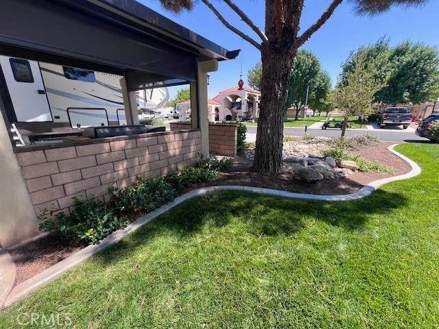 PLUS...a HOT TUB - a special private retreat tucked away in the back of the property under a covered patio. This property is truly a delightful paradise with lush grass, mature trees and gorgeous block walls. Buyer must bring in RV under 10 yrs old and a minimum of 26ft in length. HOA includes water, trash and lawn maintenance, along with community pool, spa, laundry facilities and clubhouse with gym, game area, pool table and large kitchen.