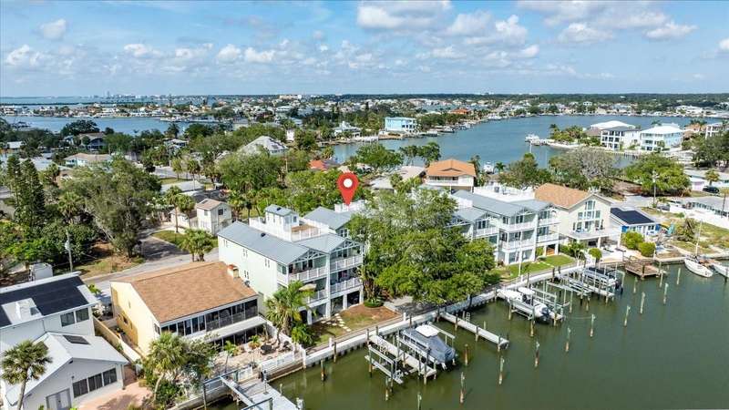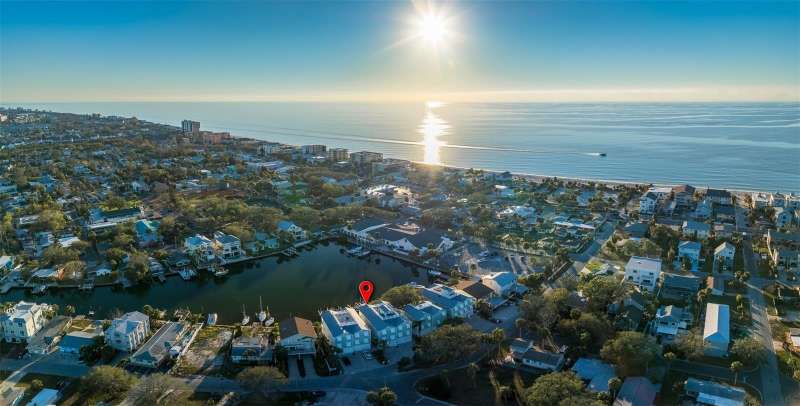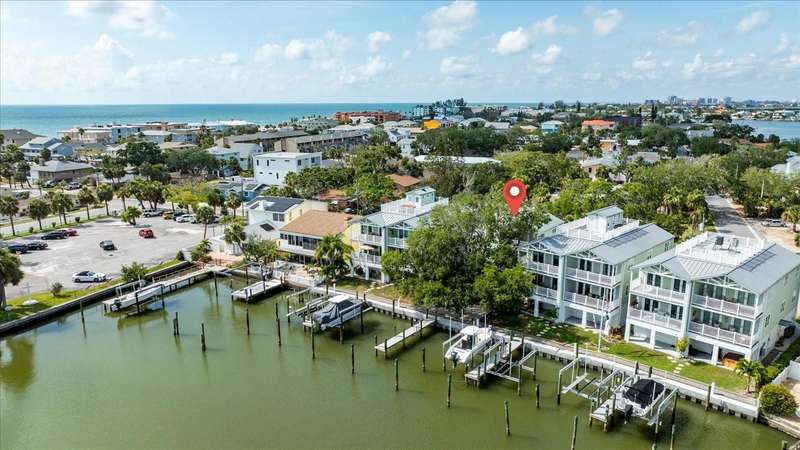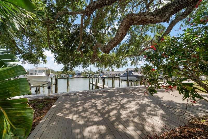 One or more photo(s) has been virtually staged. Beautiful setting! Exquisitely updated residence that boasts the spaciousness and privacy of a single-family home without the upkeep! This is a very RARE find as it includes 2 DEEP WATER BOAT SLIPS! The ELEVATED floor plan offers 2 bedrooms, office space or den, and 2.5 luxurious baths! Inviting wide terraces off of the great room and spacious primary suite capture long views of the wide cove with direct access to the intracoastal waterway and Gulf. Imagine waking up to impressive sunlight views and stepping onto either of your own deep water boat slips located directly behind your home; So convenient for jumping on your private vessel for a day of cruising to the easily accessible Gulf waters. This property exudes the essence of what Florida living is ALL about-fishing, cruising, kayaking, or beachcombing miles of pristine sandy shores just one block away. Completely remodeled and enhanced in ALL areas, the interior upgrades are impressive! Take note of the fossil stone flooring at the impressive entry. Fully equipped kitchen so rich in details; handsome cabinetry, Cambria counters and newer appliances reconfirm that this is an area any chef would welcome for the best of culinary experiences. A large laundry area has additional storage as do many areas of this attractive home. Stunning baths with exquisite tile work complement walls and showers. The primary bedroom is large with a spacious custom finished walk in closet and and welcoming private terrace, A convenient oversized two car garage is adjacent to a multipurpose room of over 400 square feet - ideal for a home gym or hobby area. Newer windows, French doors, and systems provides peace of mind for the new owners. This is a wonderful property in a small enclave of only 7 residences in a popular beach community that few compare with-small town friendly atmosphere- fabulous restaurants, parks and community events! Embrace the opportunity to live in one of the most beloved coastal communities in the Tampa Bay area!