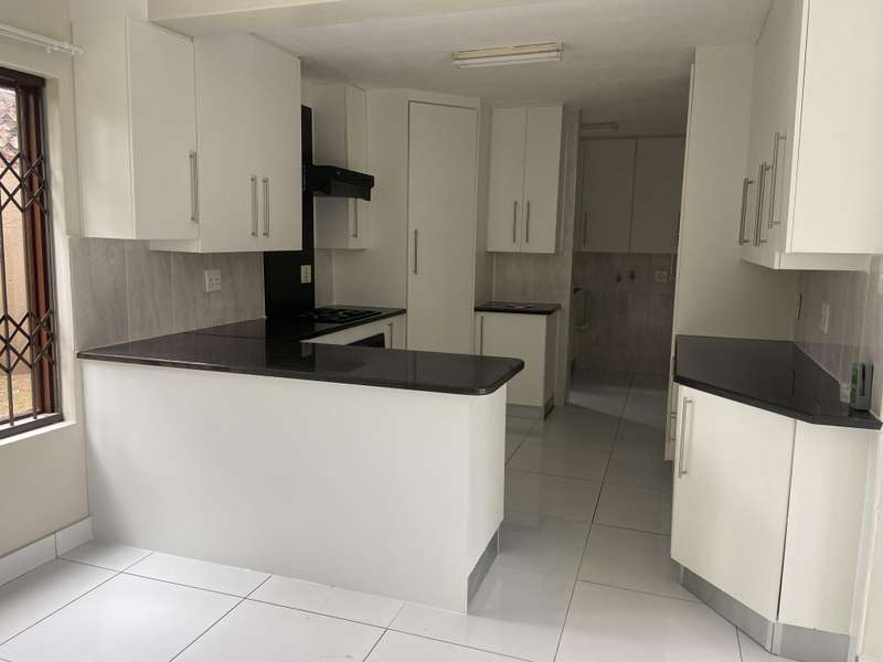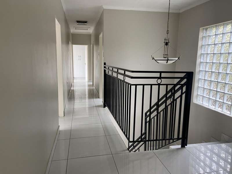 This is a lovely 4 bedroom house with 3 bathrooms and a separate longe and a dinining room with a TV room. It also has 2 garages. There’s a Jojo tank and the property is close to the nearby schools and Highveld Mall