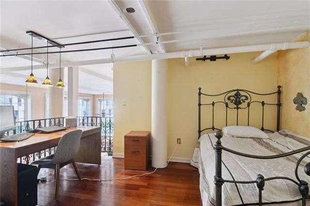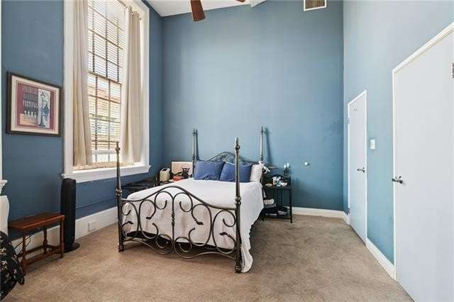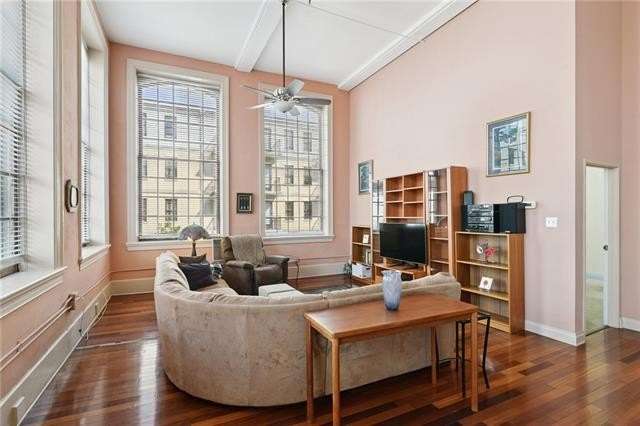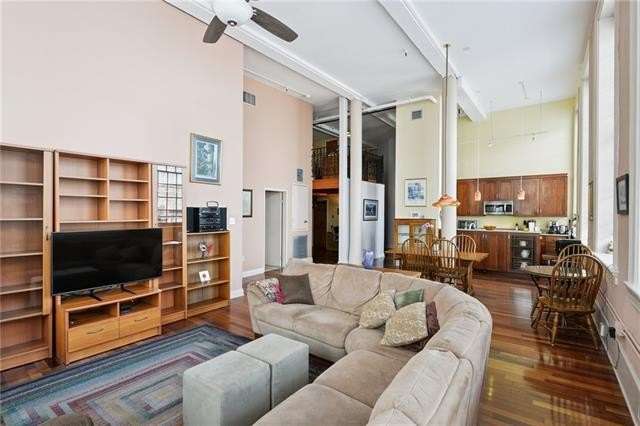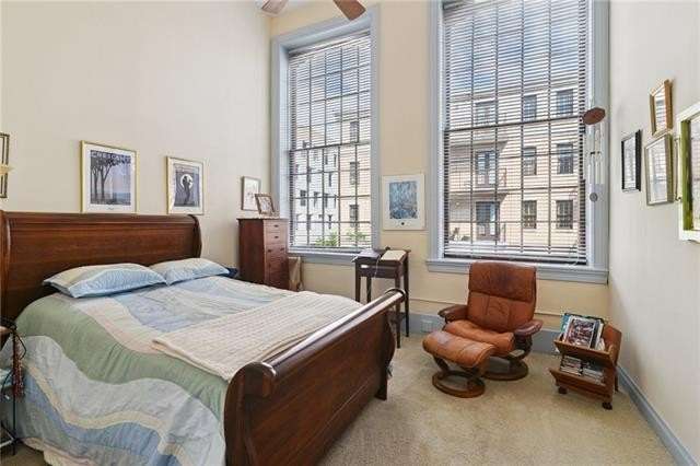 Spacious and spectacular light-filled condo at the Cotton Mill! This 3 bed, 2 bath corner unit makes an instant impression with soaring ceilings, oversized windows, custom-made Bevolo lights, and a second story loft. The open concept kitchen and living room is generous on both space, and views. Kitchen features pendant lights from Rosetree Glass Artists and custom cabinets by Singer. Two bedrooms sit on opposite ends of the ground floor, with the primary boasting an especially impressive walk-in closet customized by Singer. The third bedroom sits beneath the upstairs loft with wrought iron railings, and together, these two spaces could be imaged as a guest bedroom, an office, a den, or whatever inspires you. In unit washer and dryer in the hall. On top of all this, you’ve got all the amenities of the Cotton Mill, including their fitness center, heated pool and outdoor grilling area, party room, library, and massive courtyard. 24 hour security at the front desk. Condo association allows dogs and cats with some restrictions and permits leases for a minimum of 3 months or longer. Garage parking across the street available at $250/month. Don’t miss out on this incredible condo!