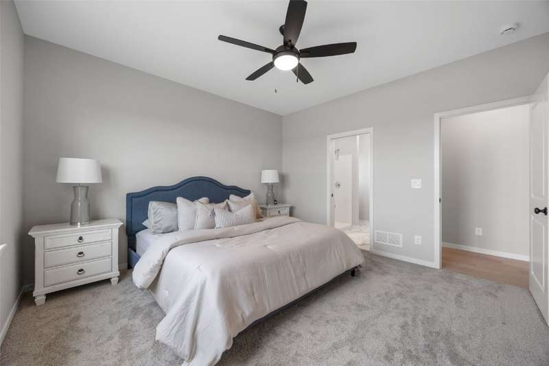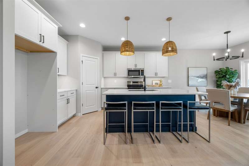 Our "Ashton" layout is now available in the popular Bowman Villas community. Located near the best trails, parks, dining, and shopping, this Villa offers the convenience of location, serenity of the park like yard, and the easy living of having option lawncare and snow removal services. This home has main level laundry, a split bedroom layout ideal for an in-home office or guest space, and a large open great room perfect for get togethers. We've included engineered hardwood flooring, designer vinyl flooring, white painted trim throughout, and quartz counters and vanities. The primary suite offers a walk in shower, dual vanities, and spacious primary closet. The basement can be finished prior to closing, please allow 60-75 days. Sellers would consider a trade on this home.