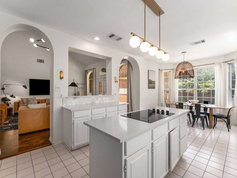 Situated on a corner lot in the sought-after Chase Oaks neighborhood, this spacious 5-bedroom, 4-bath home offers over 3,500 sq ft of thoughtfully designed living space. Soaring ceilings and large windows fill the home with natural light, while fresh paint and stylish updates throughout add a modern touch. The kitchen has been beautifully renovated with quartz countertops, marble backsplash, and updated fixturesperfect for everyday living and entertaining.The main level features a generous primary suite with a spa-like bath and a private study ideal for working from home. An additional guest bedroom with a full bath allows guests of any age to enjoy the primary floor. Upstairs, youll find additional bedrooms, a game room, and flexible living space to suit a variety of needs.Outside, enjoy a covered pati and a fenced backyard, with a circular driveway and rear-entry garage providing both curb appeal and convenience. Located in Plano ISD and just minutes from parks, trails, and The Courses at Watters Creek, this home combines comfort, functionality, and an unbeatable location.