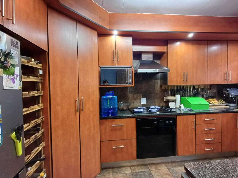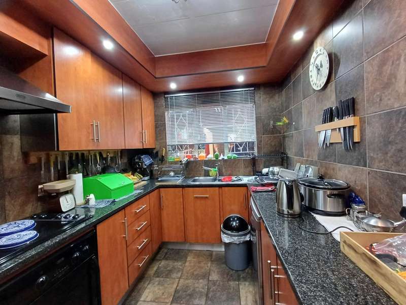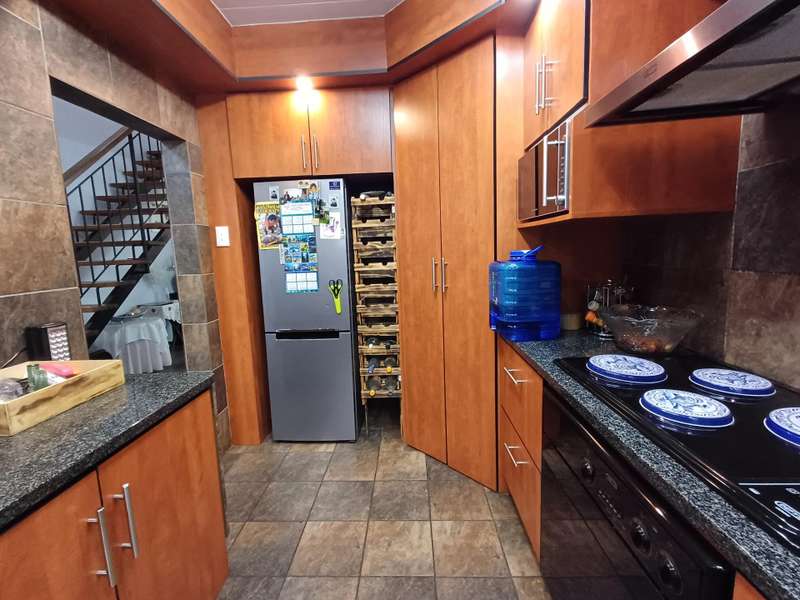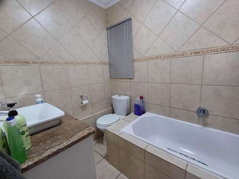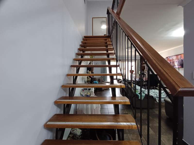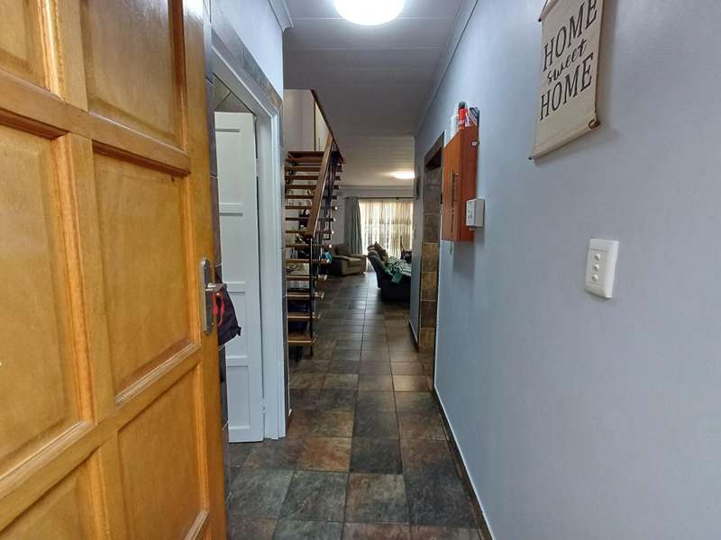 BEAUTIFUL TWO-BEDROOM DUPLEX This home offers two spacious bedrooms upstairs with cupboards and tile flooring MES with bath, basin & loo Second bathroom with shower, basin & loo Spacious lounge and dining room downstairs with a guest loo Lovely kitchen with granite tops, hob, under counter oven and extractor fan. Loads of cupboard space. Enclosed patio overlooking a well-maintained private garden Single lock-up garage Parking for visitors Automated access gate Security fence around complex